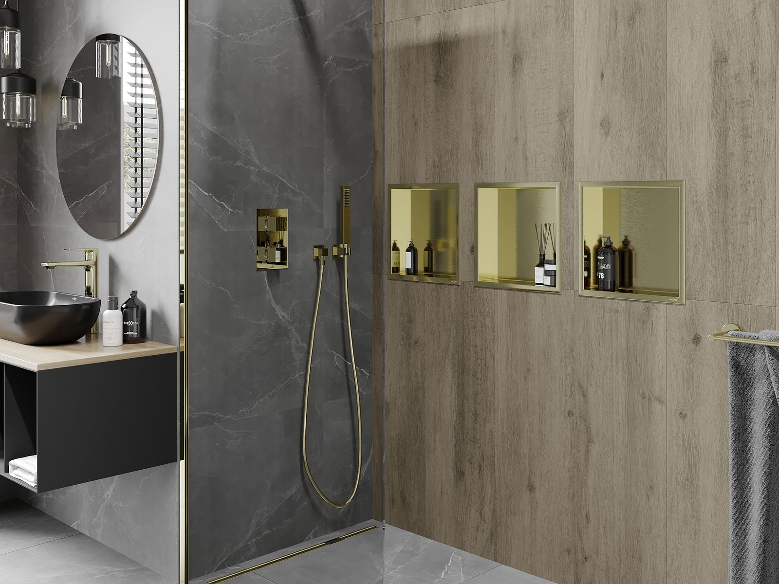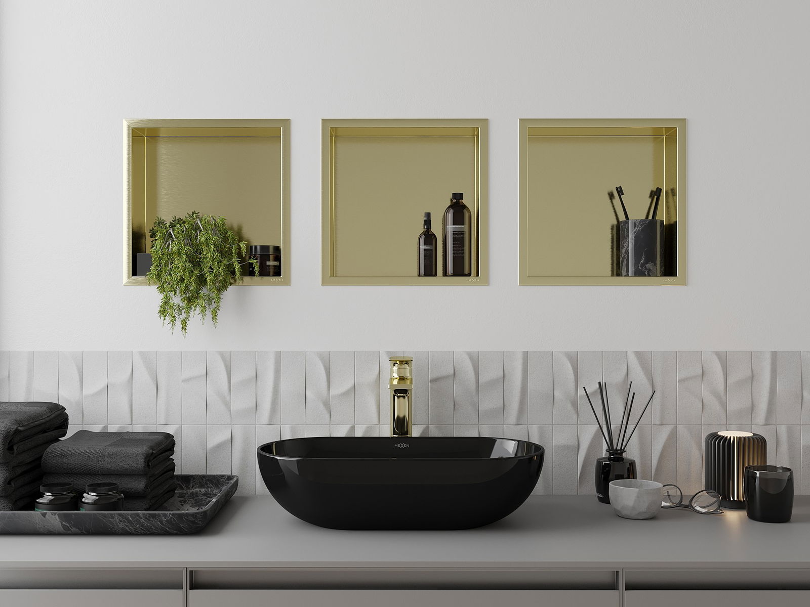 Mexen X-Wall-R étagère encastrée avec collerette 30 x 30 cm, or brossé - 1950303010
