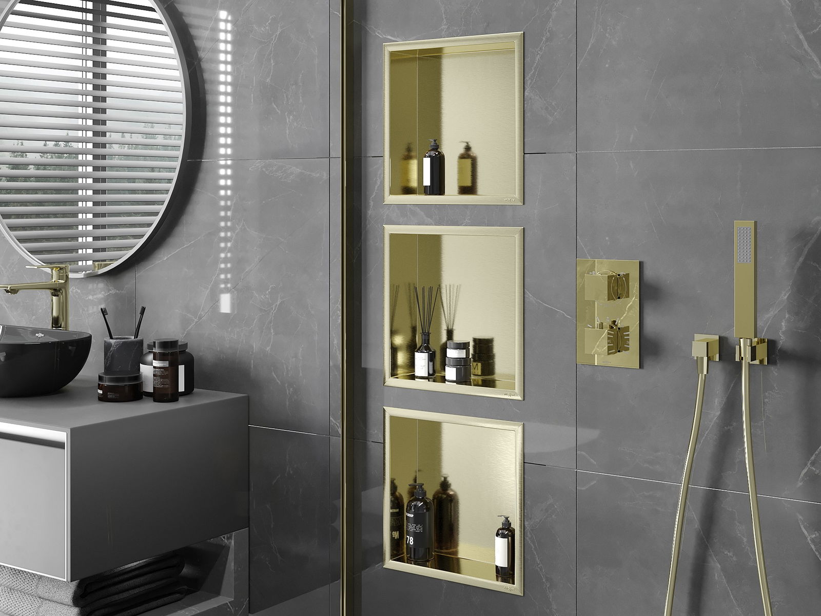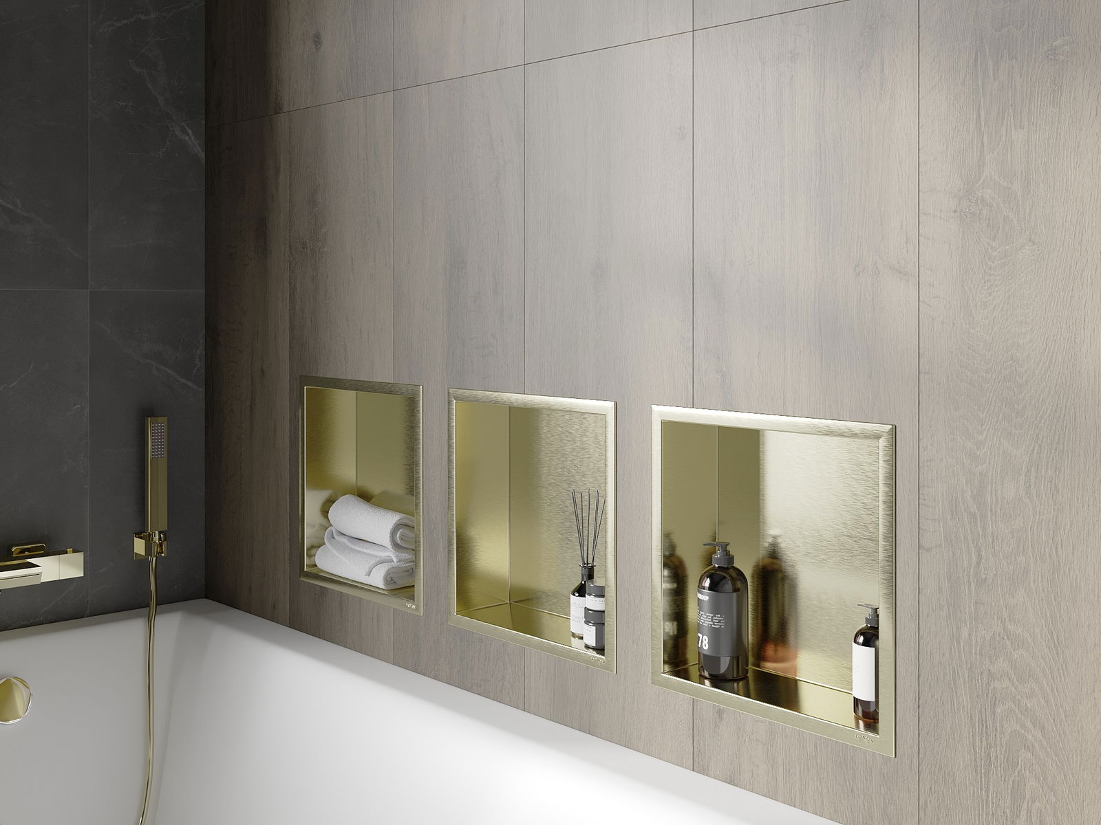 Mexen X-Wall-R étagère encastrée avec rebord 30 x 30 cm, or brossé - 1950303010