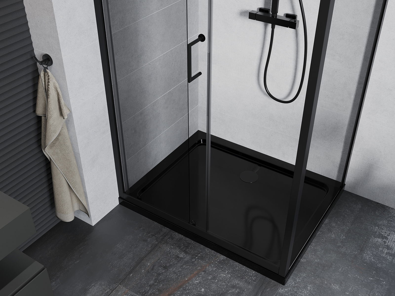 Mexen Apia cabine de douche coulissante 140 x 90 cm, transparente, noire + receveur plat, noir - 840-140-090-70-00-4070B