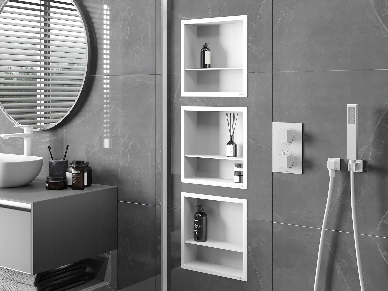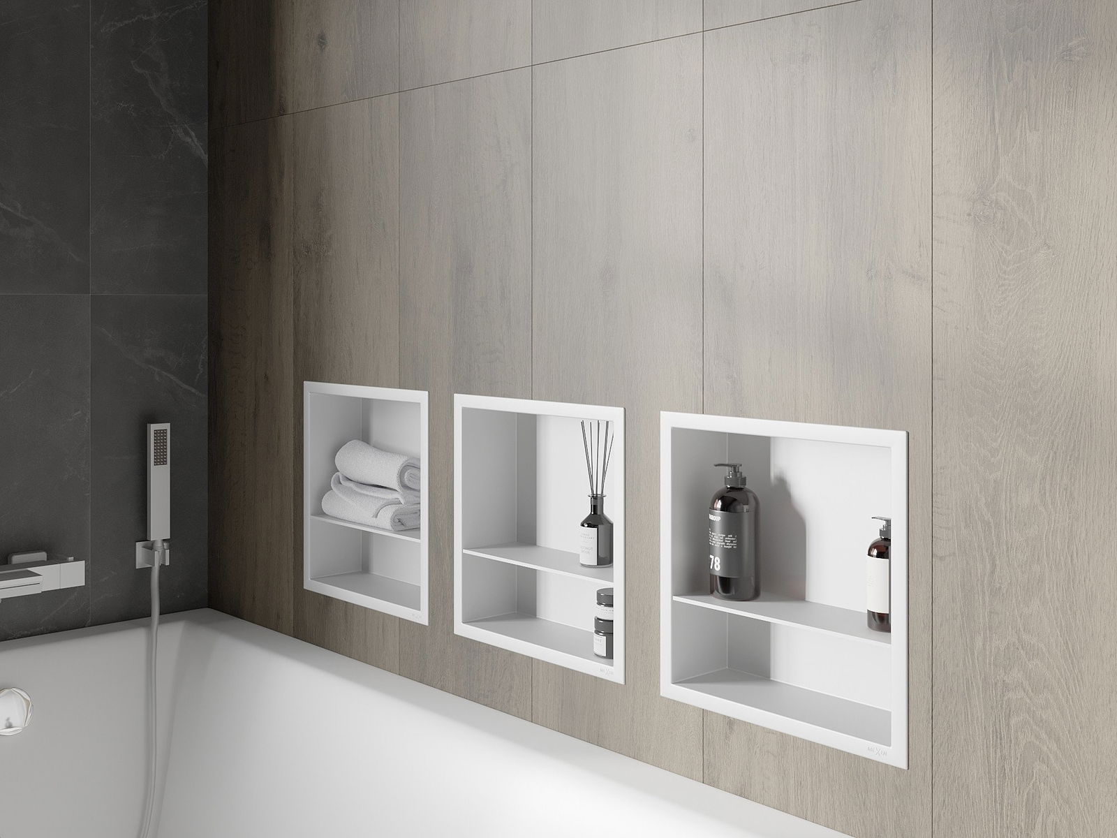 Mexen X-Wall-R étagère d'encastrement avec rebord et étagère 30 x 30 cm, blanche - 1920303010S