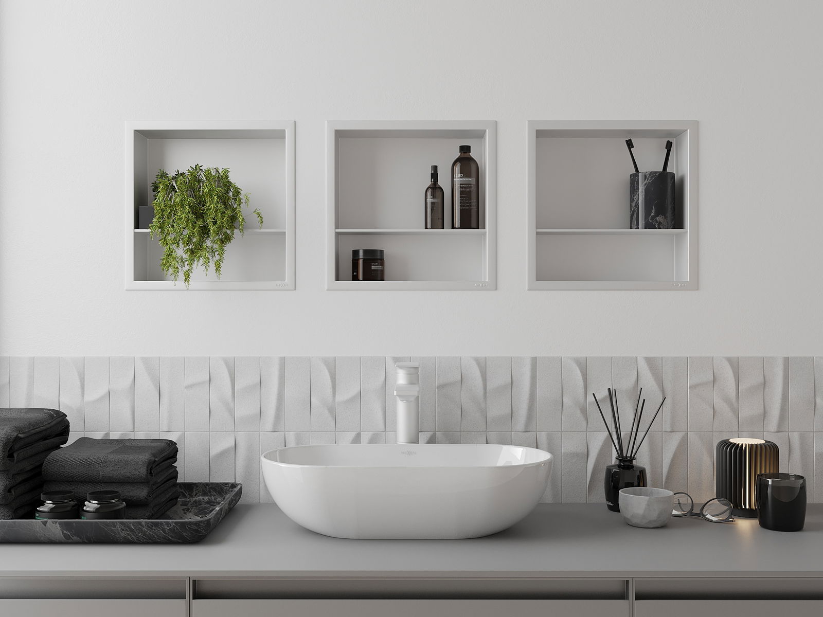 Possibilité d'installation murale ou dans une structure spécialement conçue. Cette solution extrêmement moderne et fonctionnelle permet de gagner de la place et d'harmoniser le produit avec l'esthétique de votre intérieur, créant ainsi une composition harmonieuse.