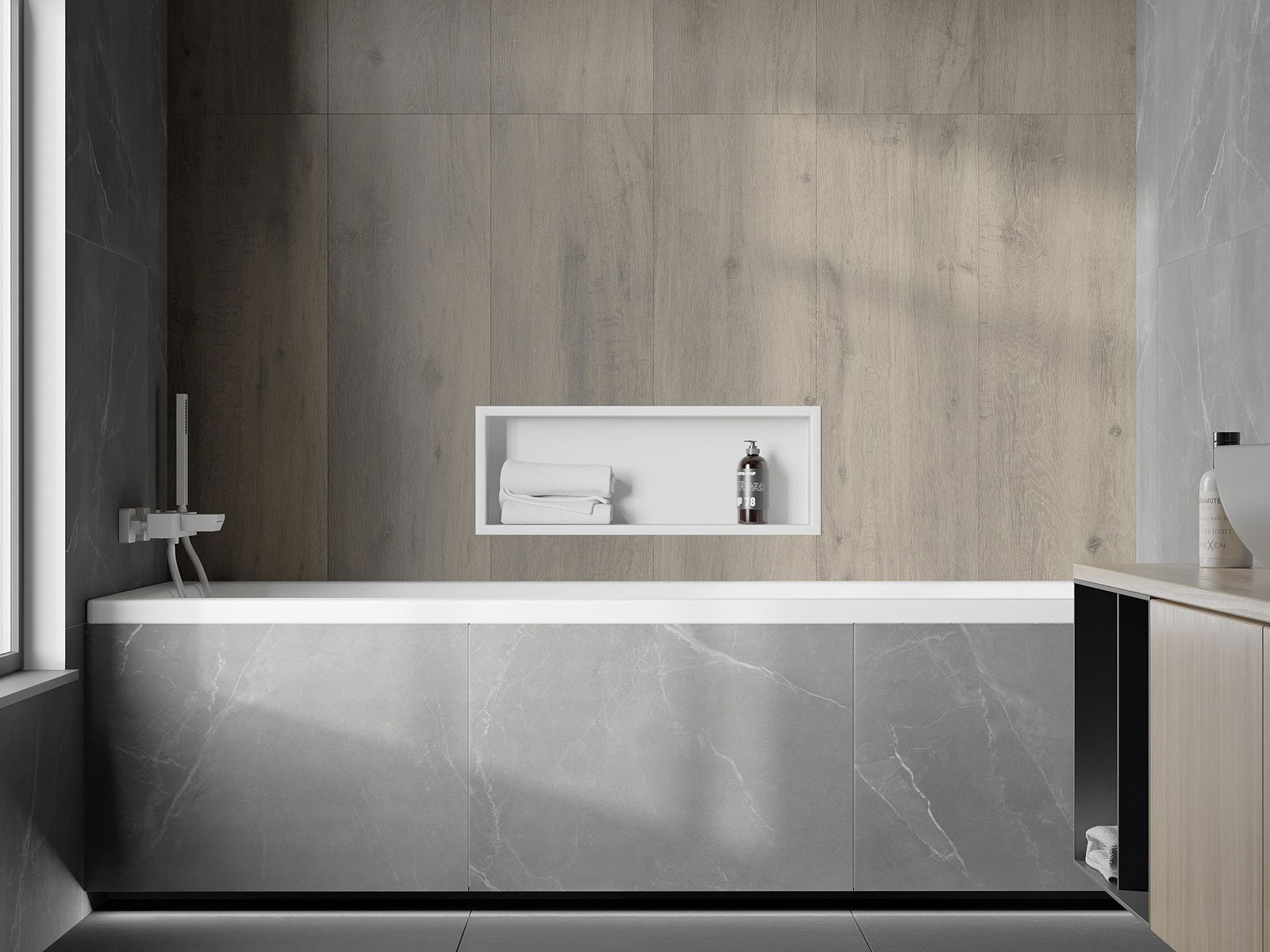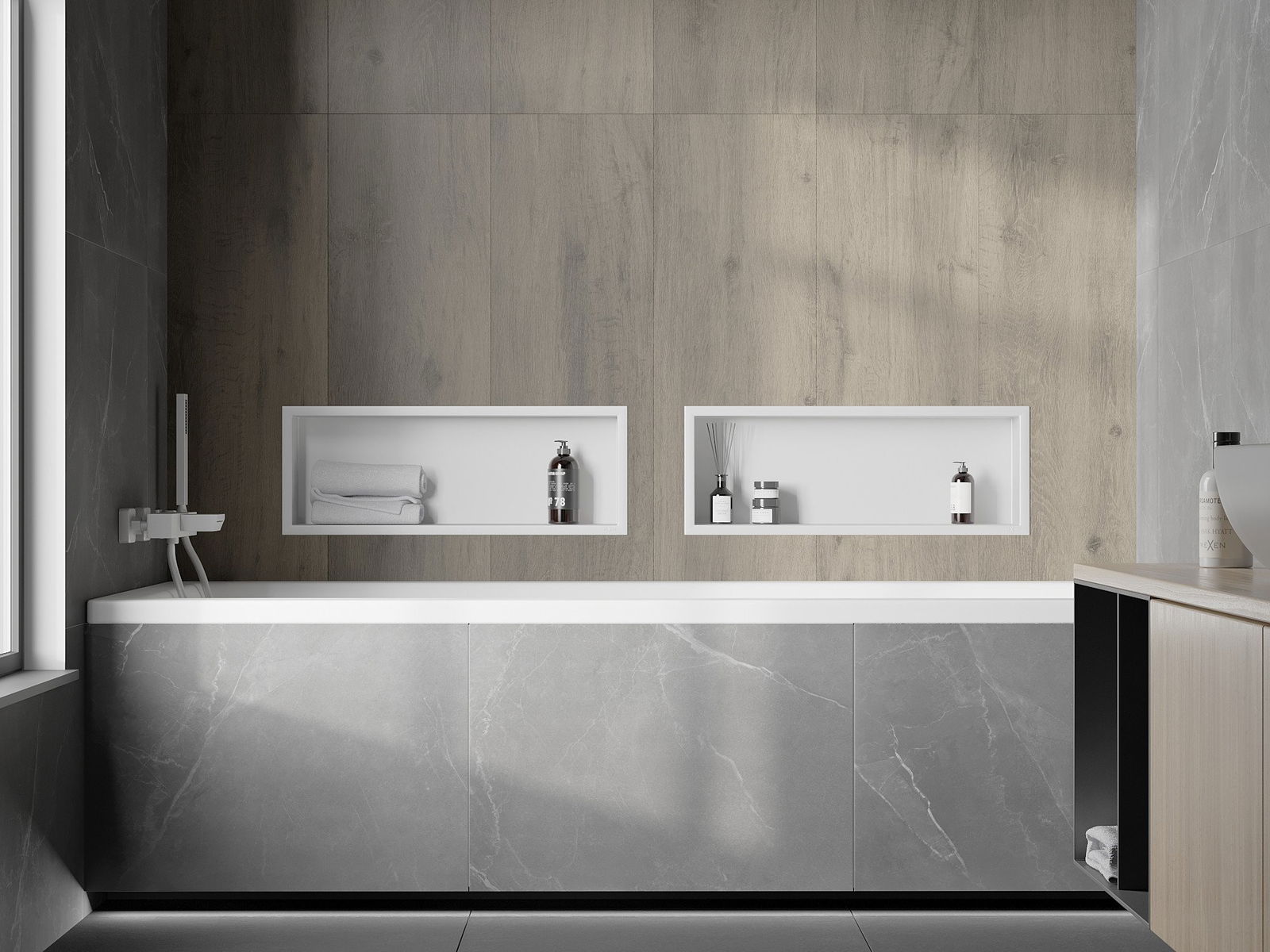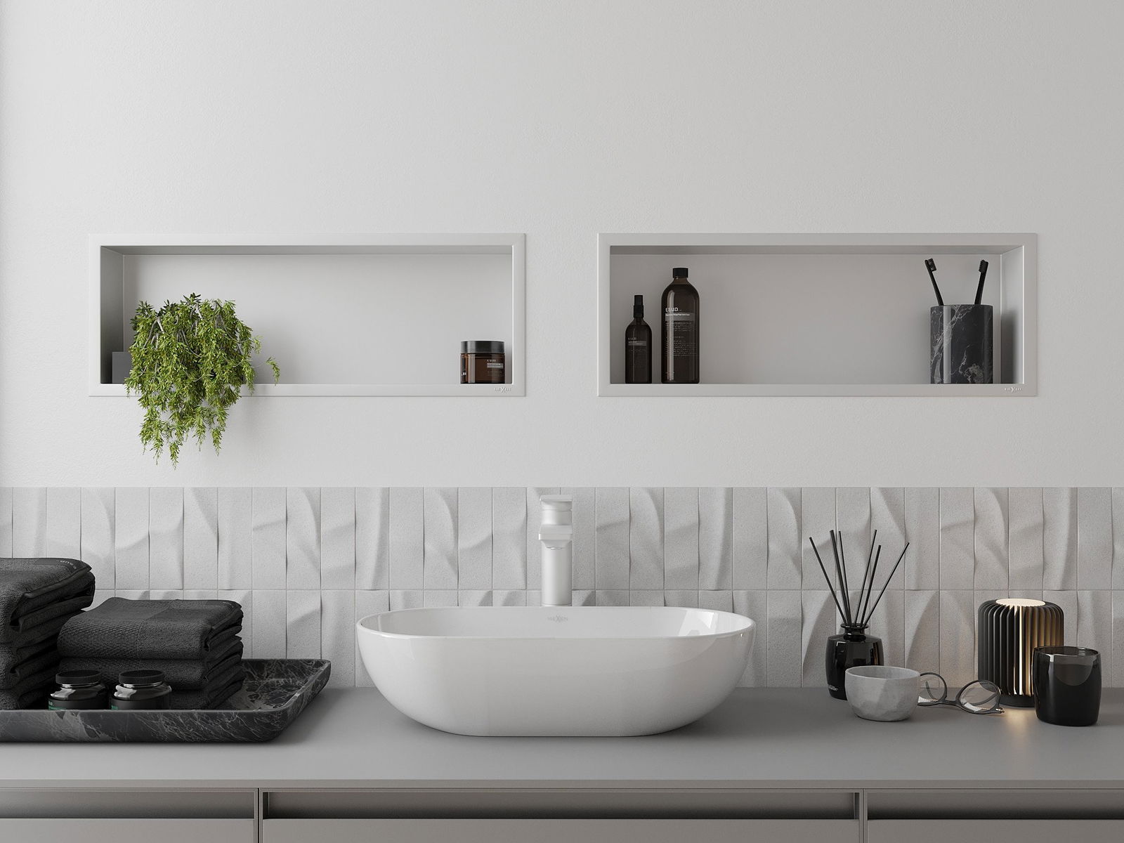 Possibilité d'installation murale ou dans une structure spécialement conçue. Cette solution extrêmement moderne et fonctionnelle permet de gagner de la place et d'harmoniser le produit avec l'esthétique de votre intérieur, créant ainsi une composition harmonieuse.