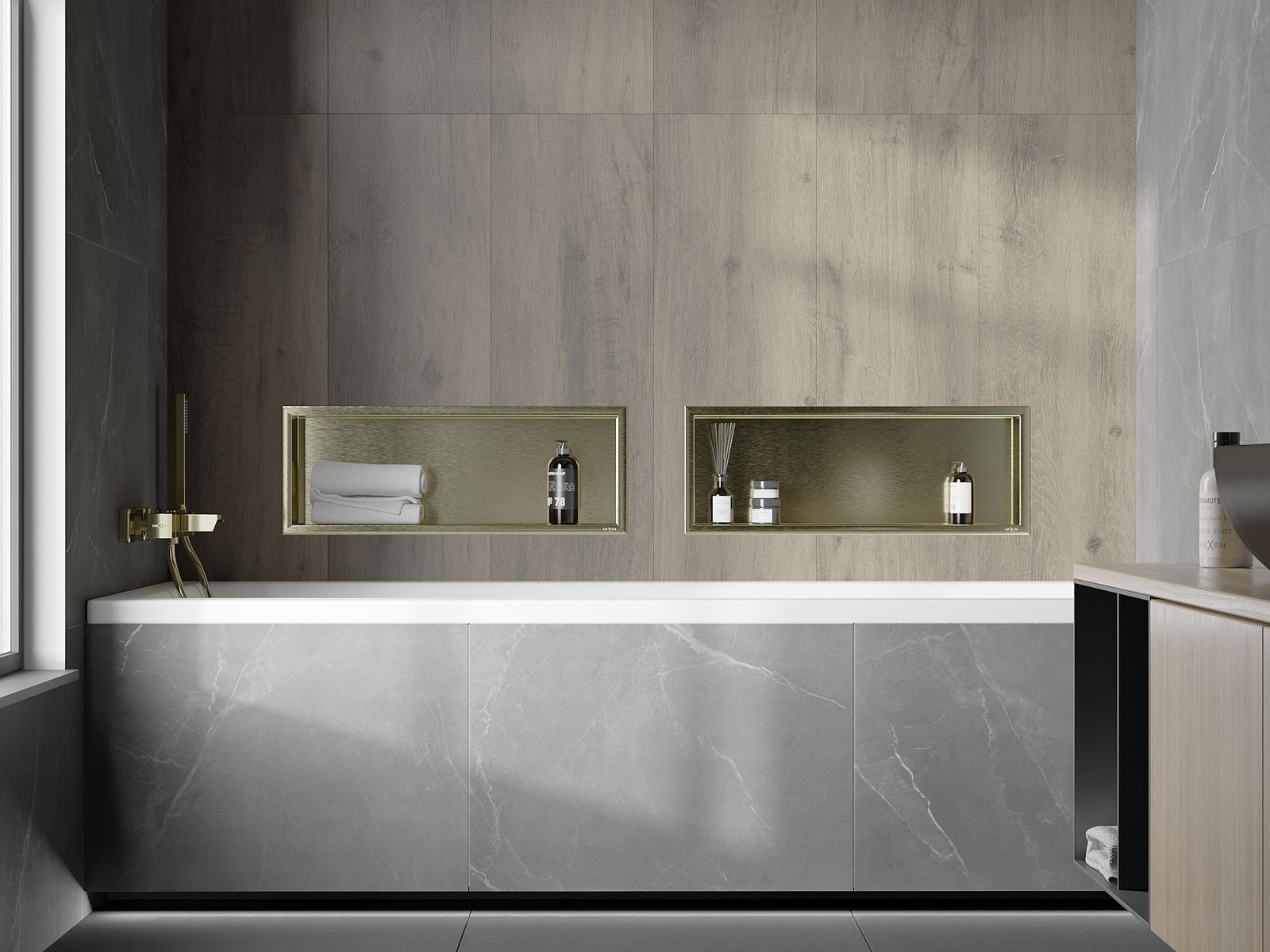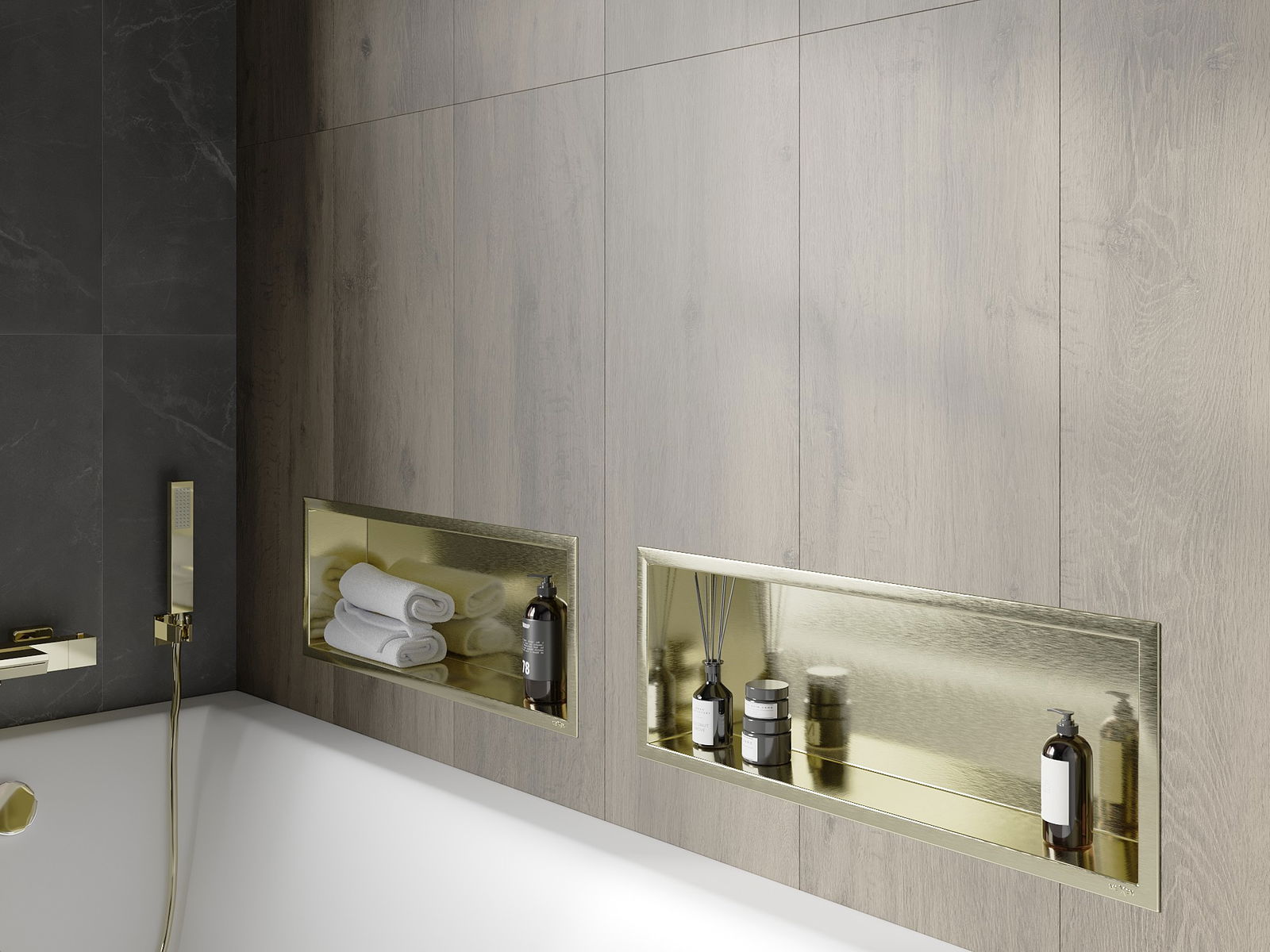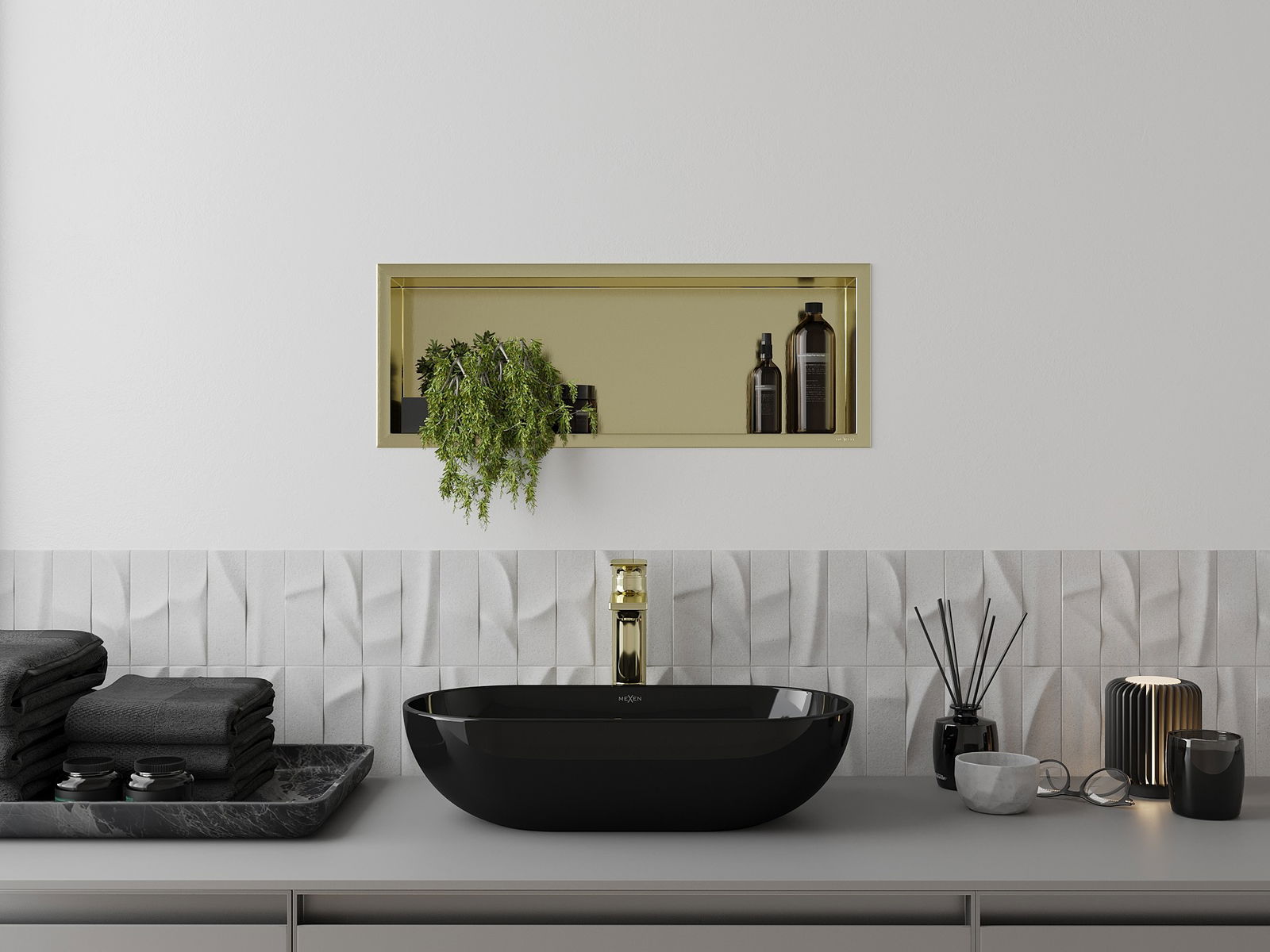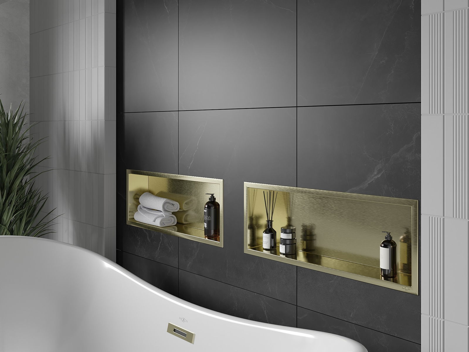Mexen X-Wall-R étagère encastrée avec collerette 60 x 20 cm, or brossé - 1950602010