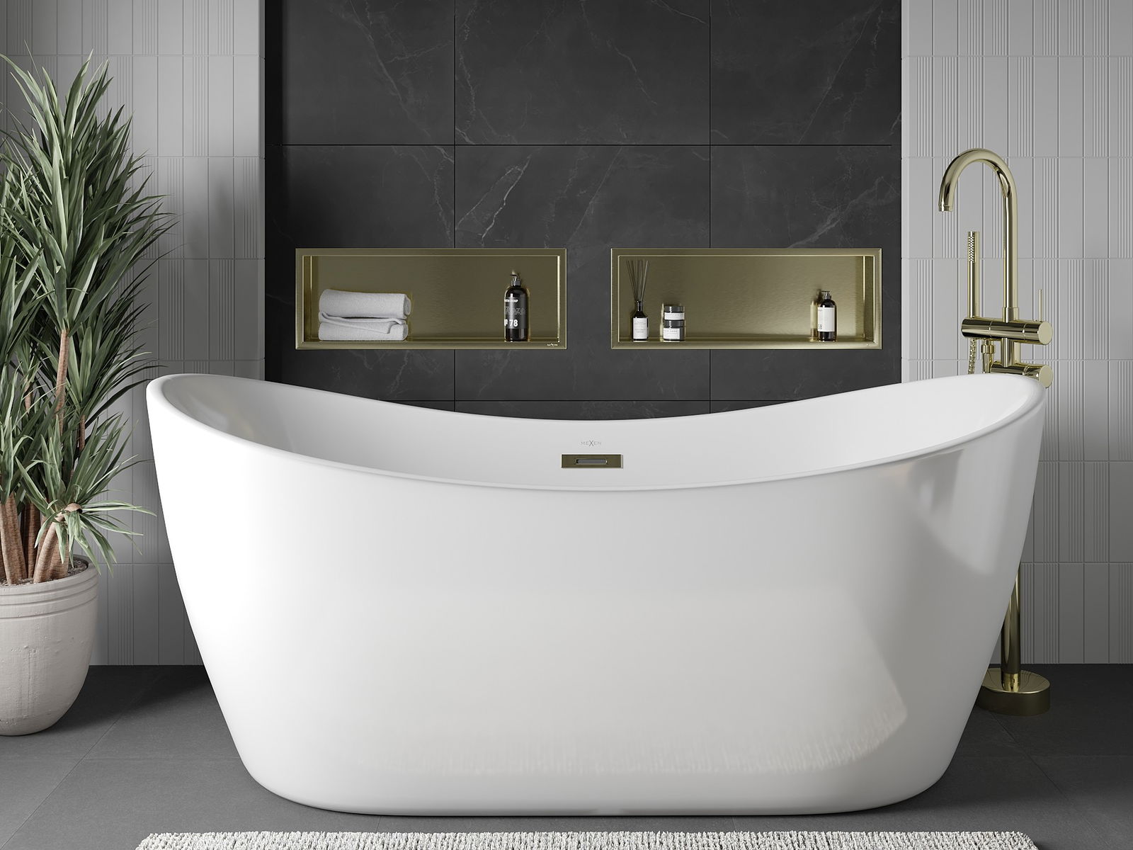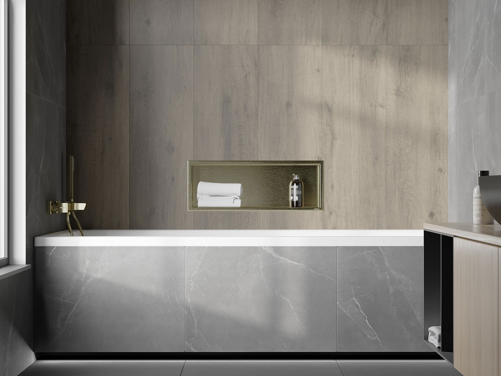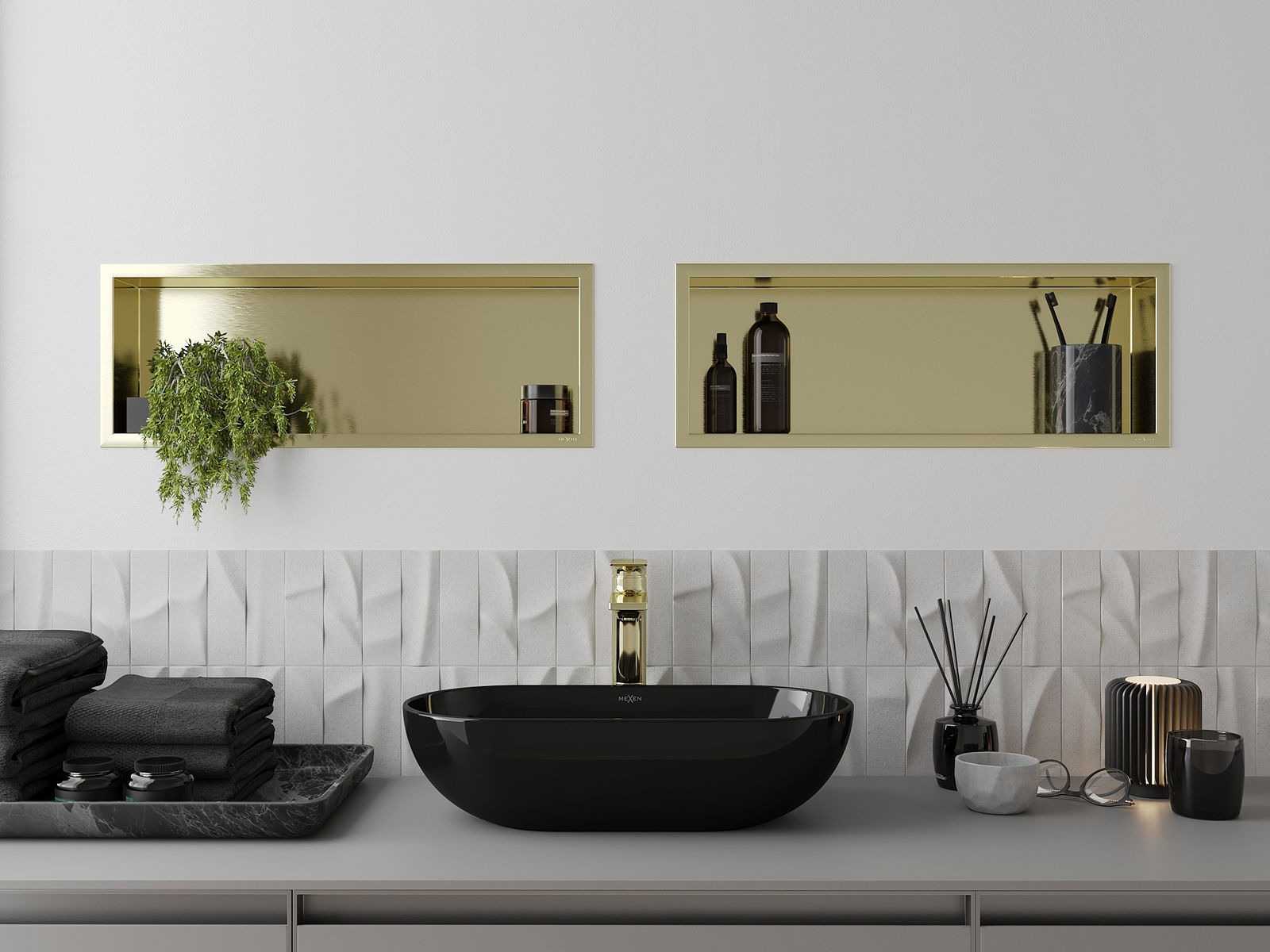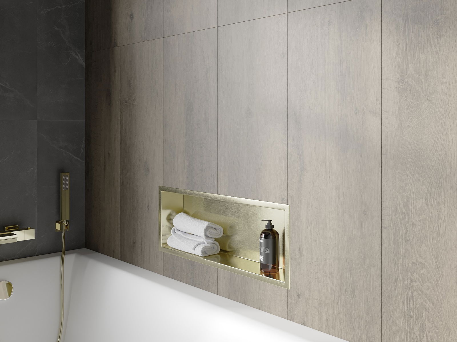 Mexen X-Wall-R étagère encastrée avec collerette 60 x 20 cm, or brossé - 1950602010