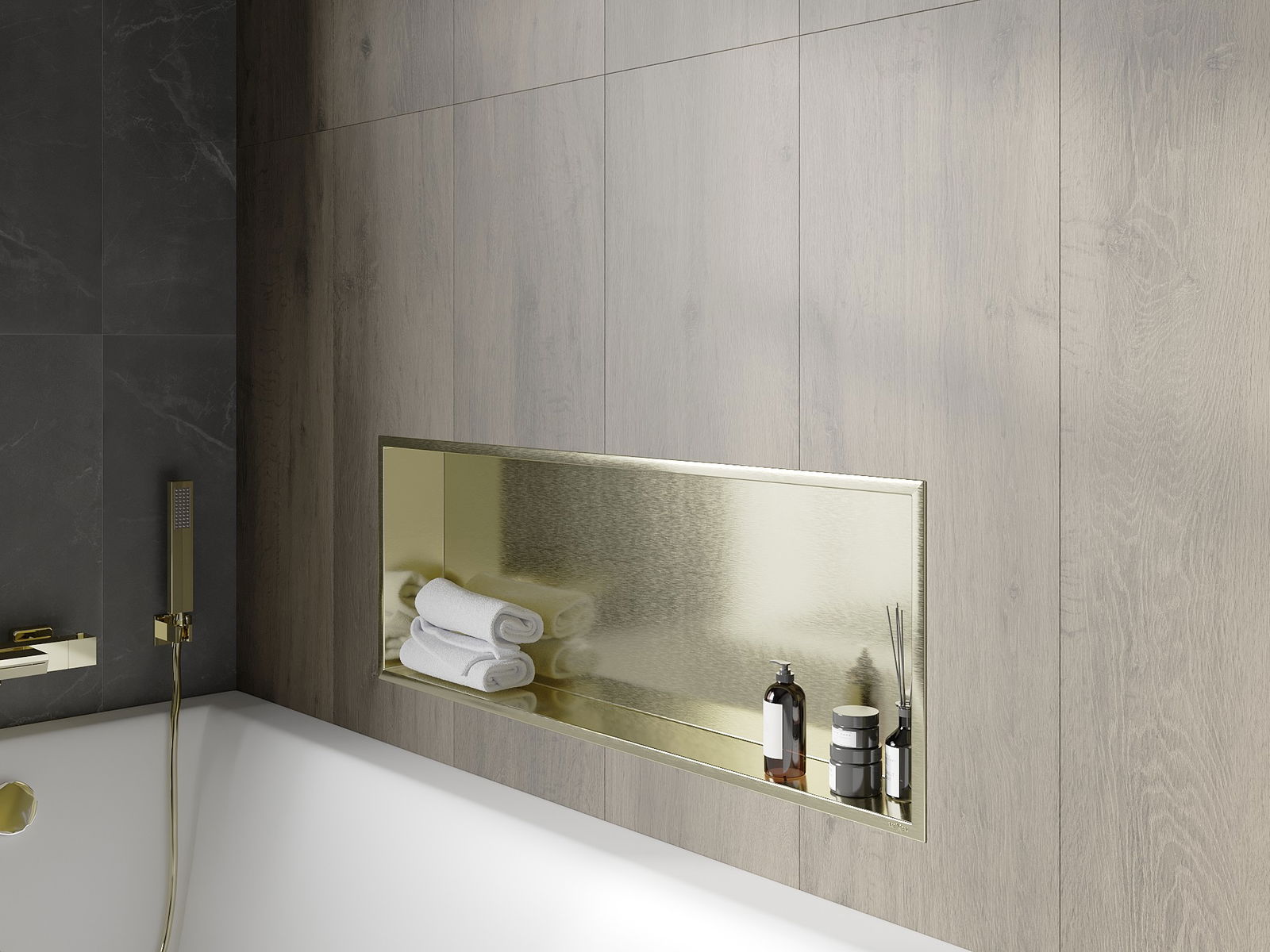 Mexen X-Wall-R étagère encastrée avec rebord 90 x 30 cm, or brossé - 1950903010