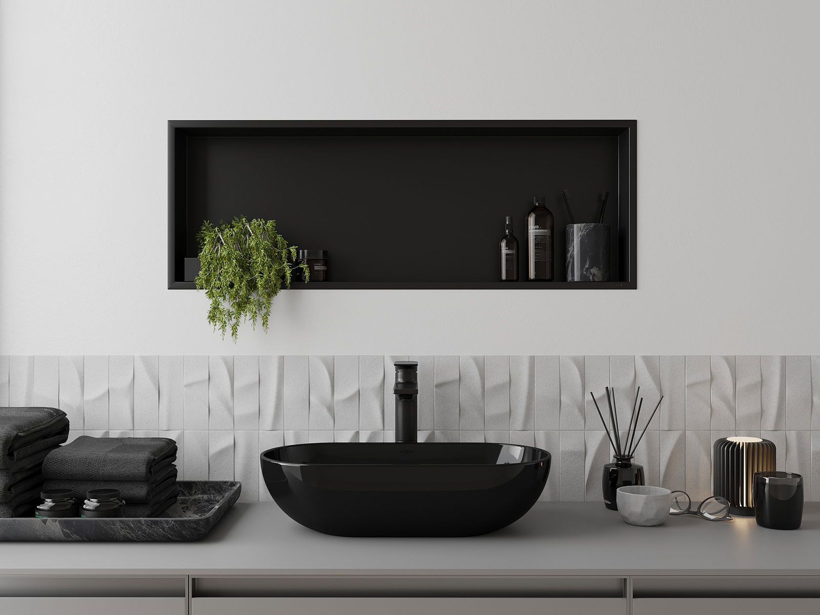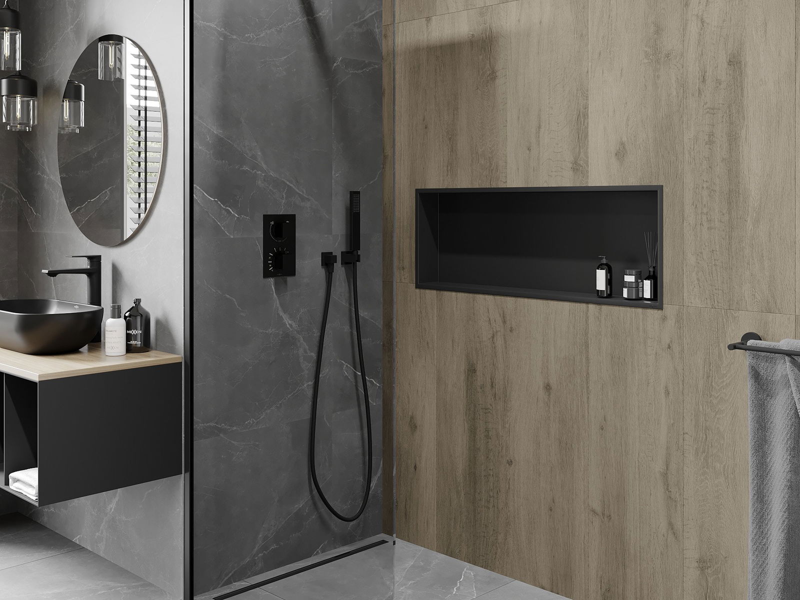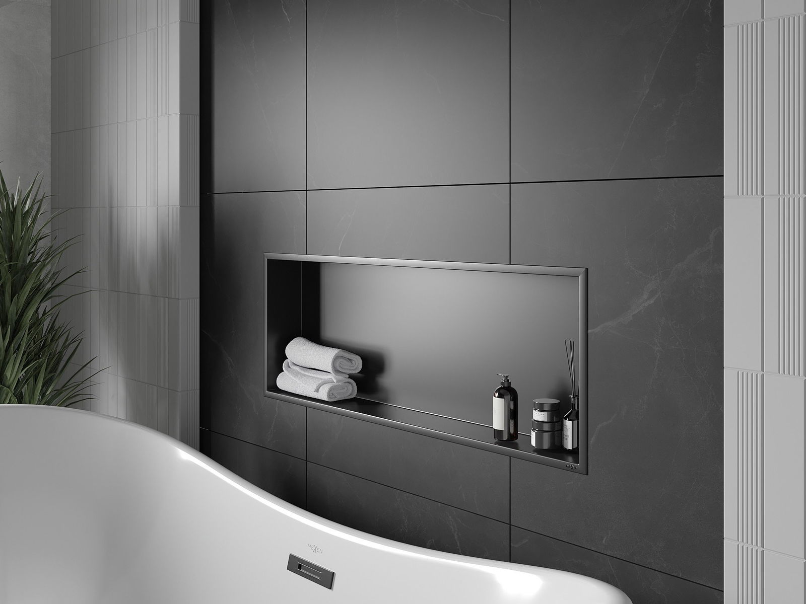 Mexen X-Wall-R étagère encastrée avec collerette 90 x 30 cm, noire - 1970903010