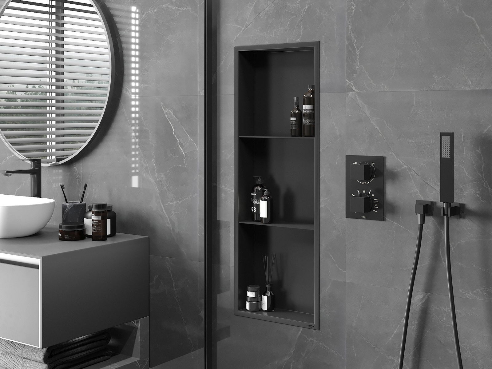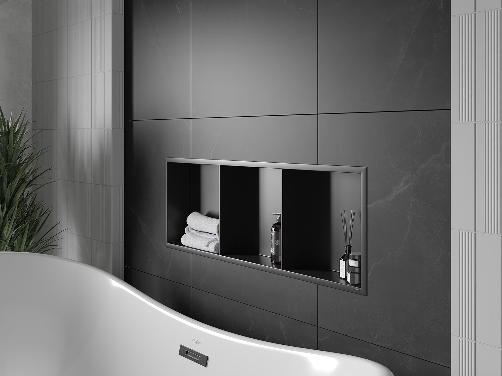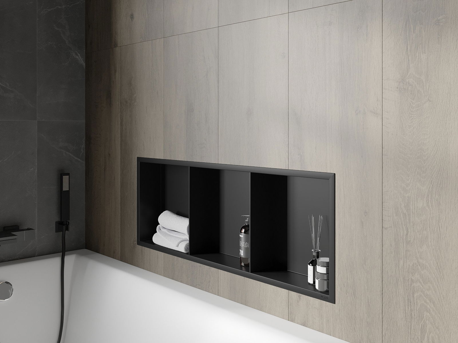 Mexen X-Wall-R étagère encastrée avec rebord et étagère 90 x 30 cm, noire - 1970903010S