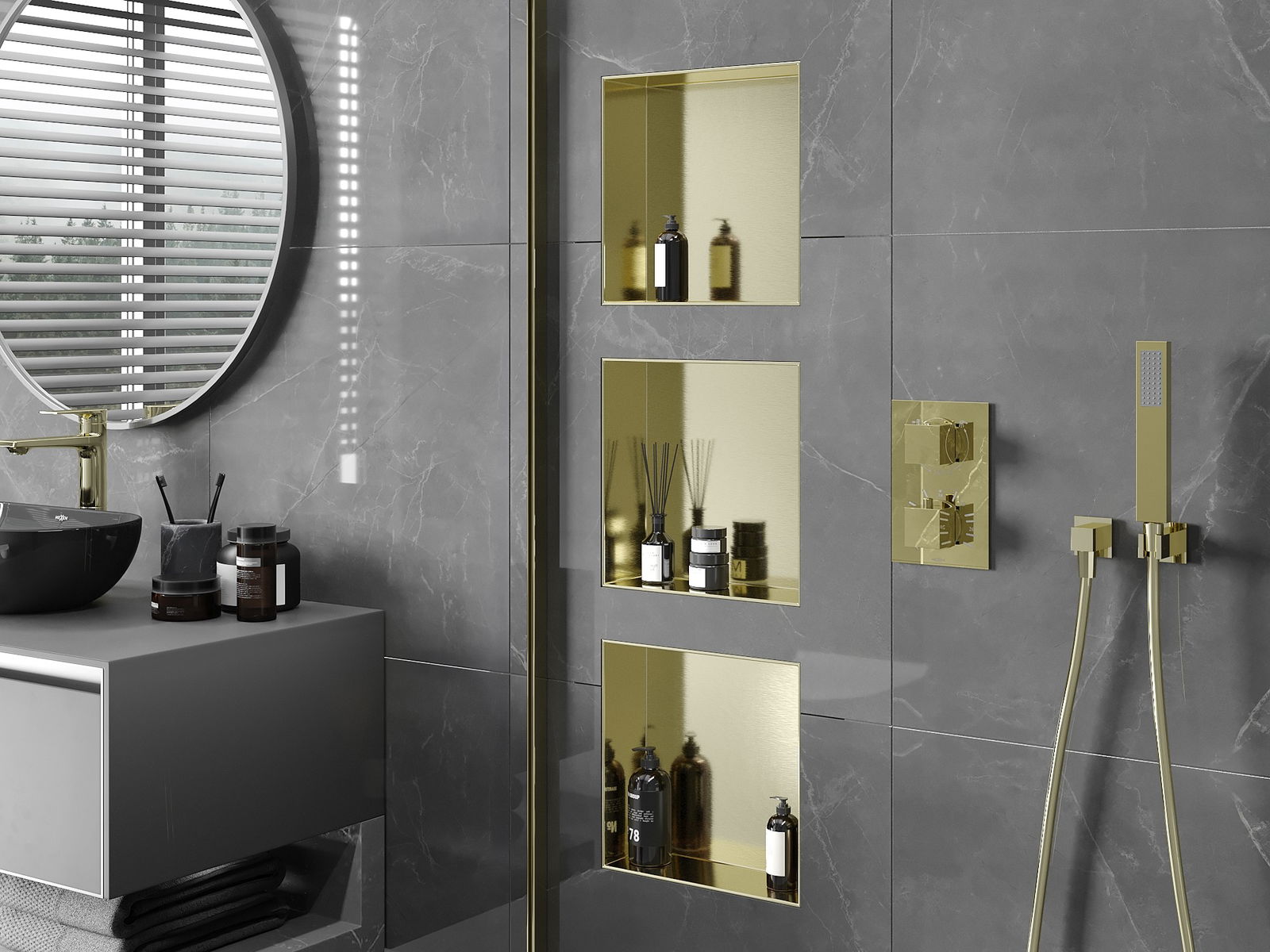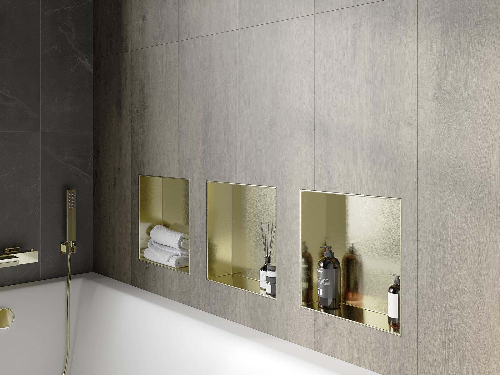 Mexen X-Wall-NR étagère incrustée sans bride 30 x 30 cm, or brossé - 1951303010