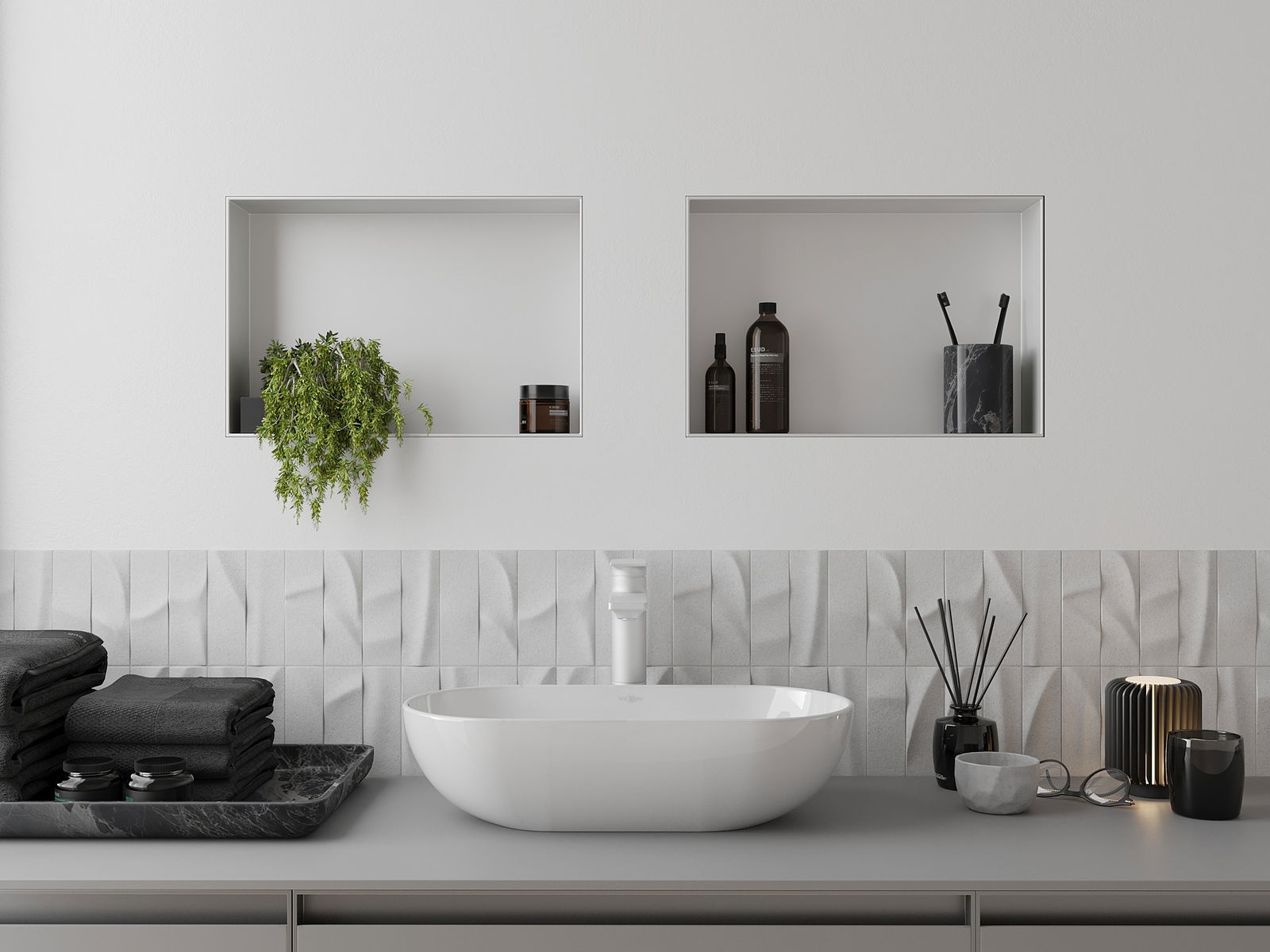 Possibilité d'installation murale ou dans une structure spécialement conçue. Cette solution extrêmement moderne et fonctionnelle permet de gagner de la place et d'harmoniser le produit avec l'esthétique de votre intérieur, créant ainsi une composition harmonieuse.