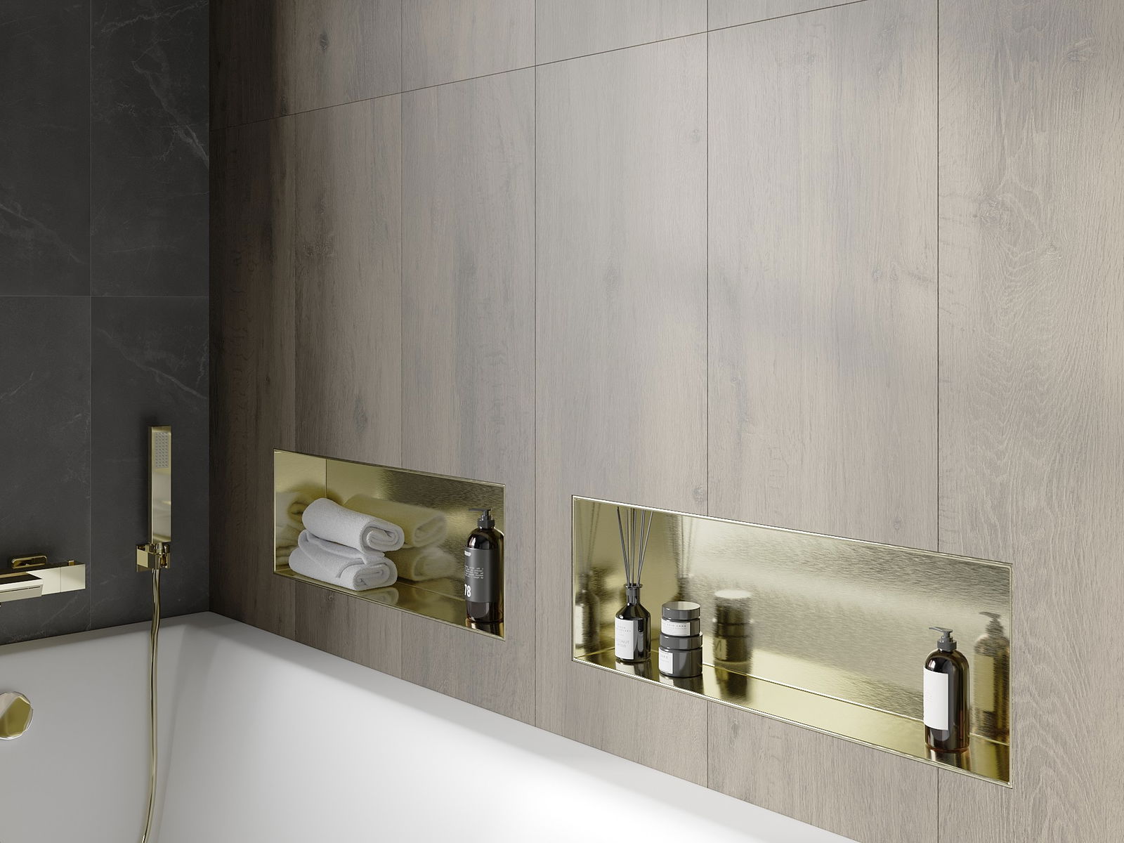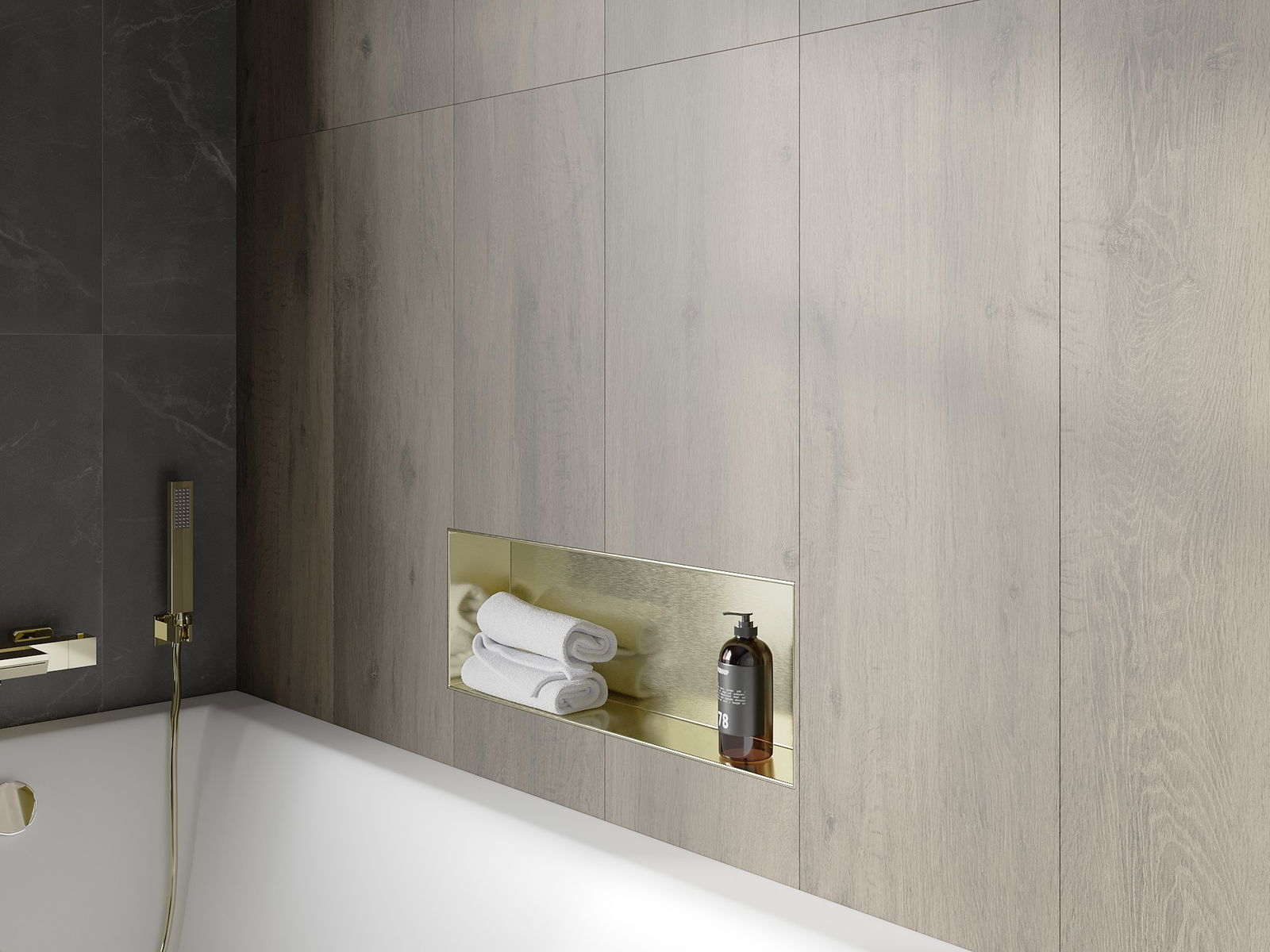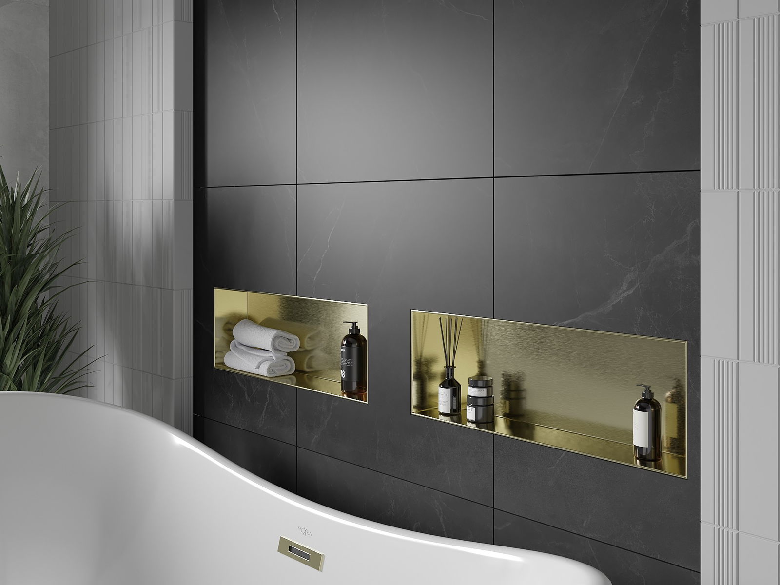 Mexen X-Wall-NR étagère encastrée sans collerette 60 x 20 cm, or brossé - 1951602010
