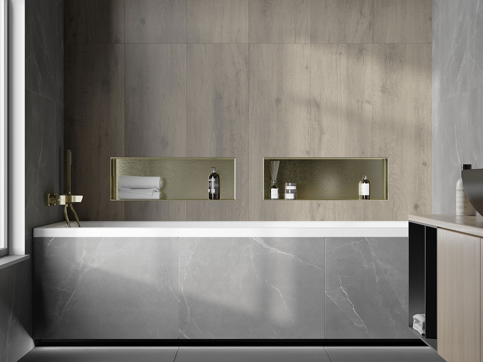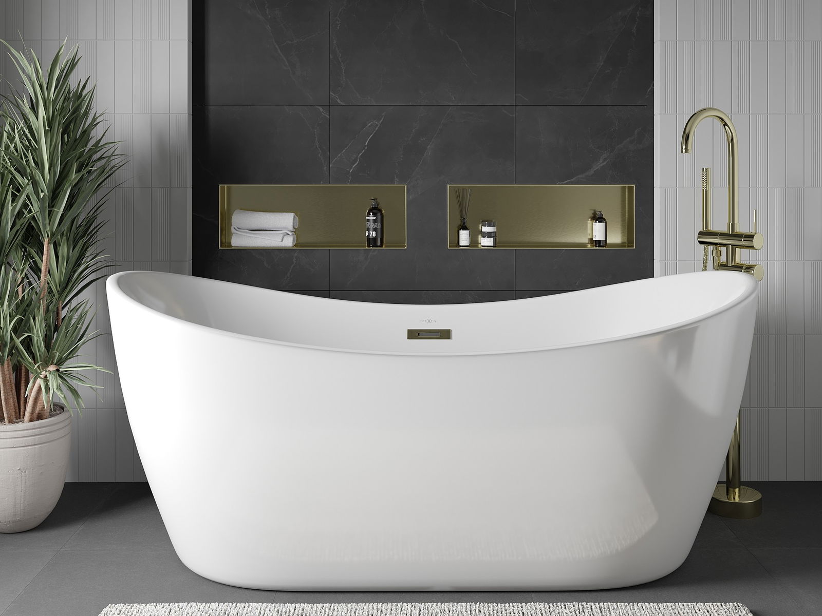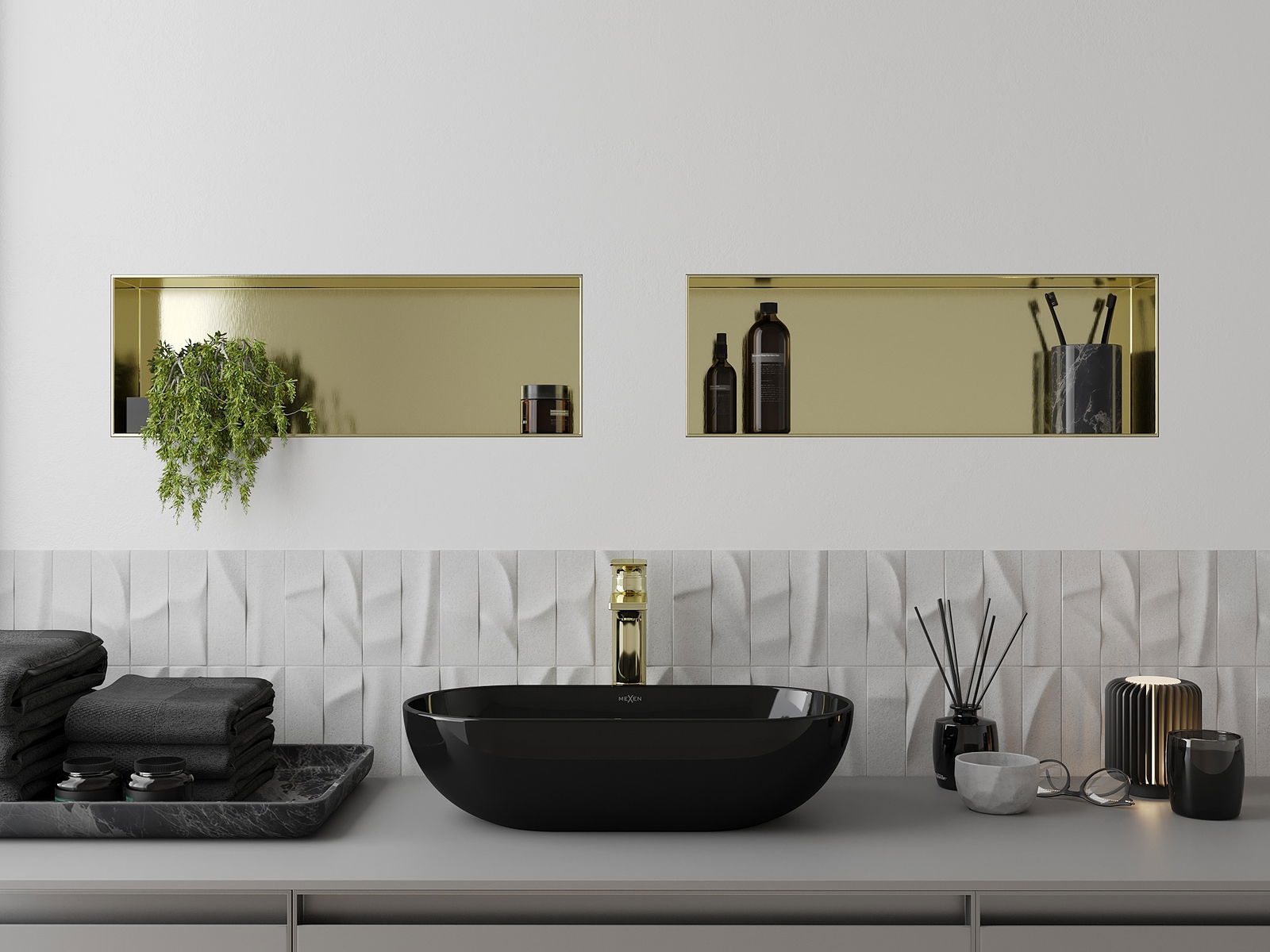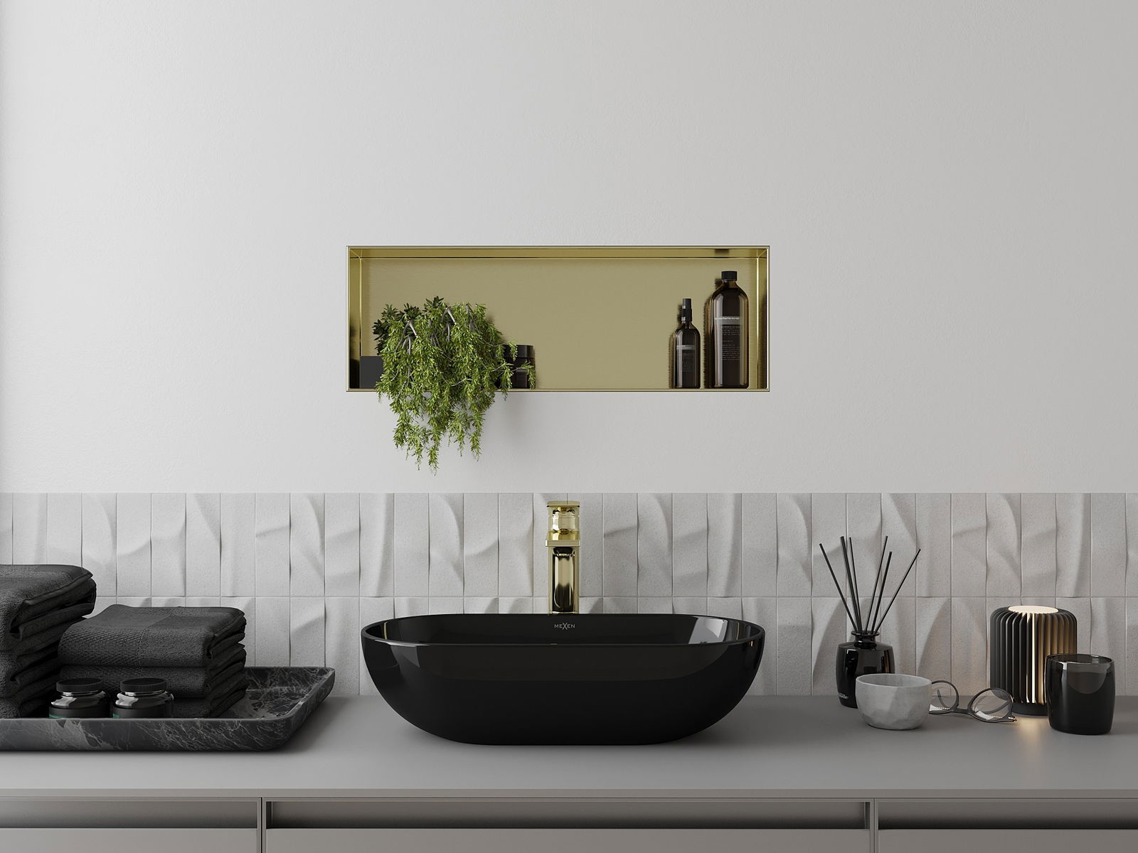 Mexen X-Wall-NR étagère encastrée sans collerette 60 x 20 cm, or brossé - 1951602010