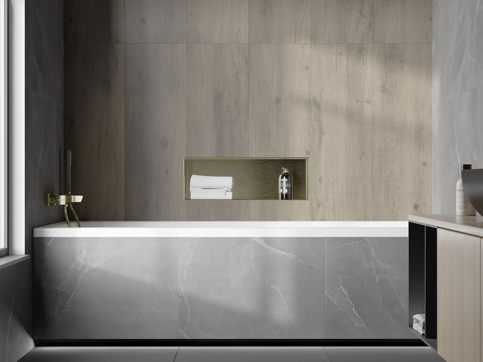 Possibilité de montage dans un mur ou dans une construction spécialement préparée. C'est une solution extrêmement moderne et fonctionnelle, permettant d'économiser de l'espace ainsi que d'adapter le produit à l'esthétique de l'intérieur et de créer une composition harmonieuse.
