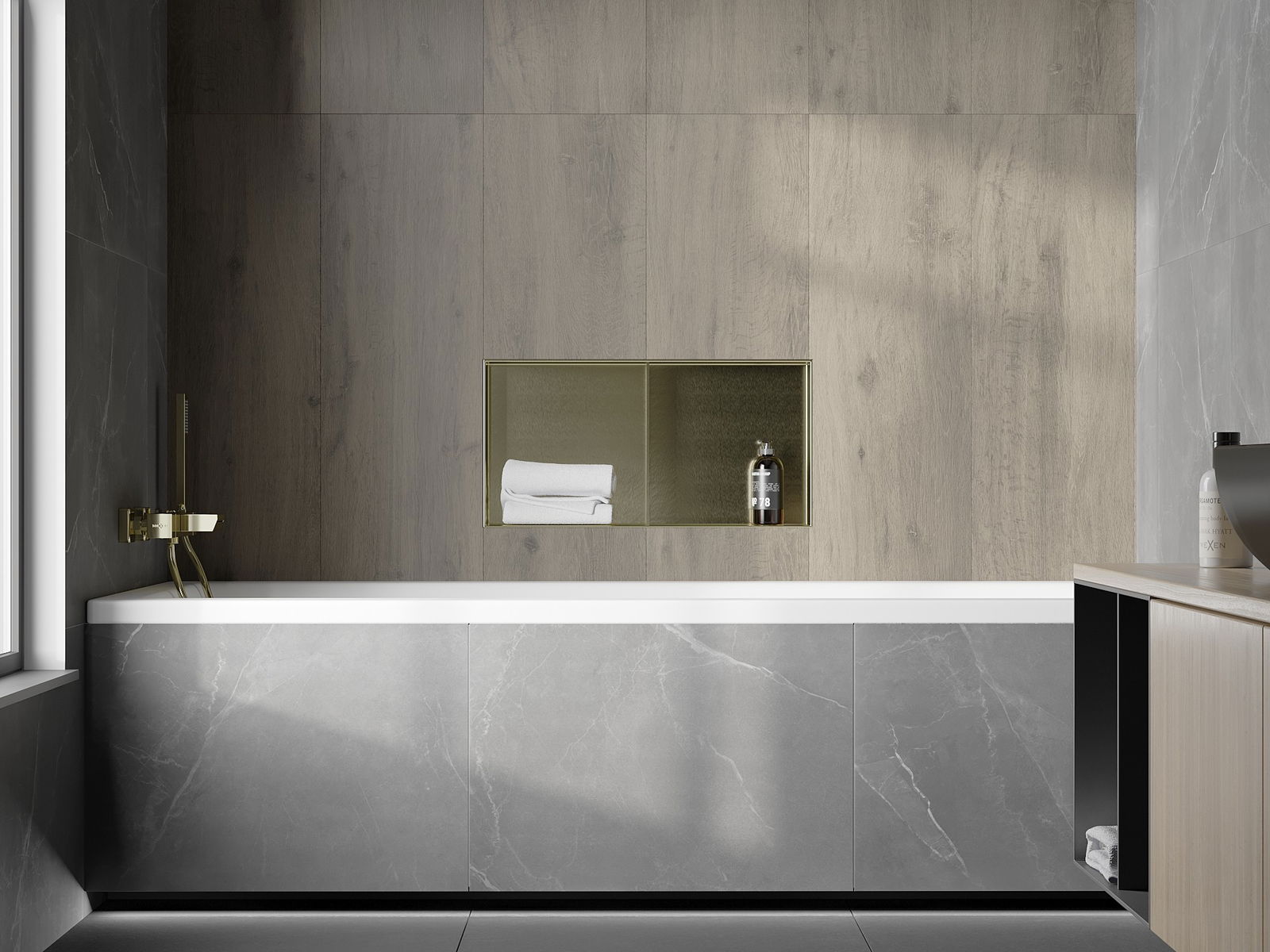 Possibilité de montage dans un mur ou dans une construction spécialement préparée. C'est une solution extrêmement moderne et fonctionnelle, permettant d'économiser de l'espace ainsi que d'adapter le produit à l'esthétique de l'intérieur et de créer une composition harmonieuse.