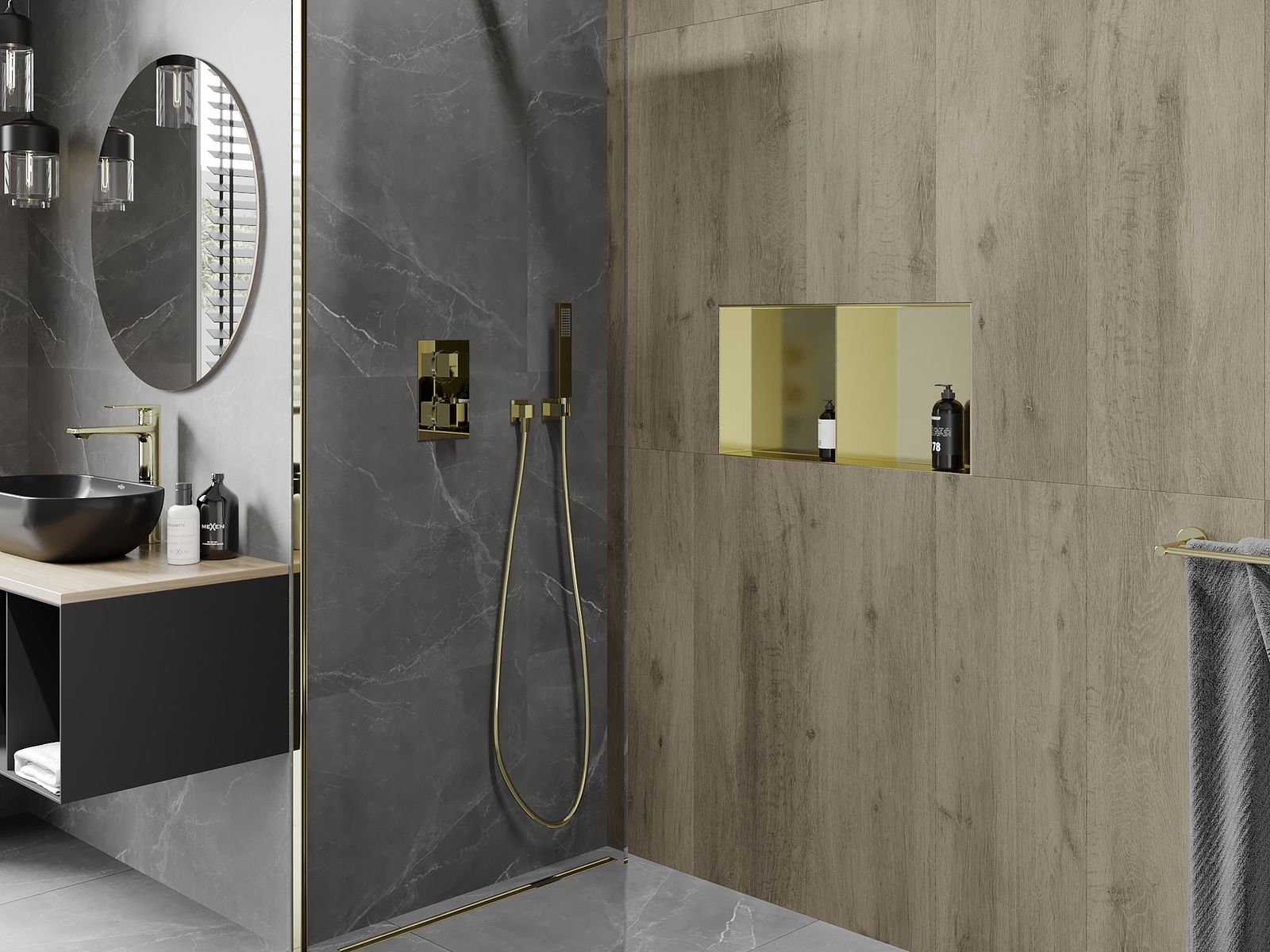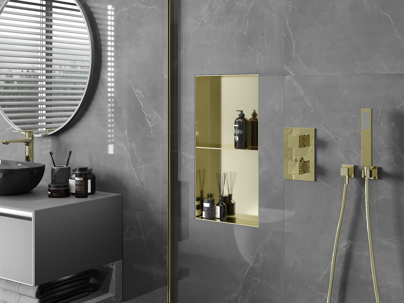 Mexen X-Wall-NR étagère encastrée sans collerette avec tablette 60 x 30 cm, or brossé - 1951603010S