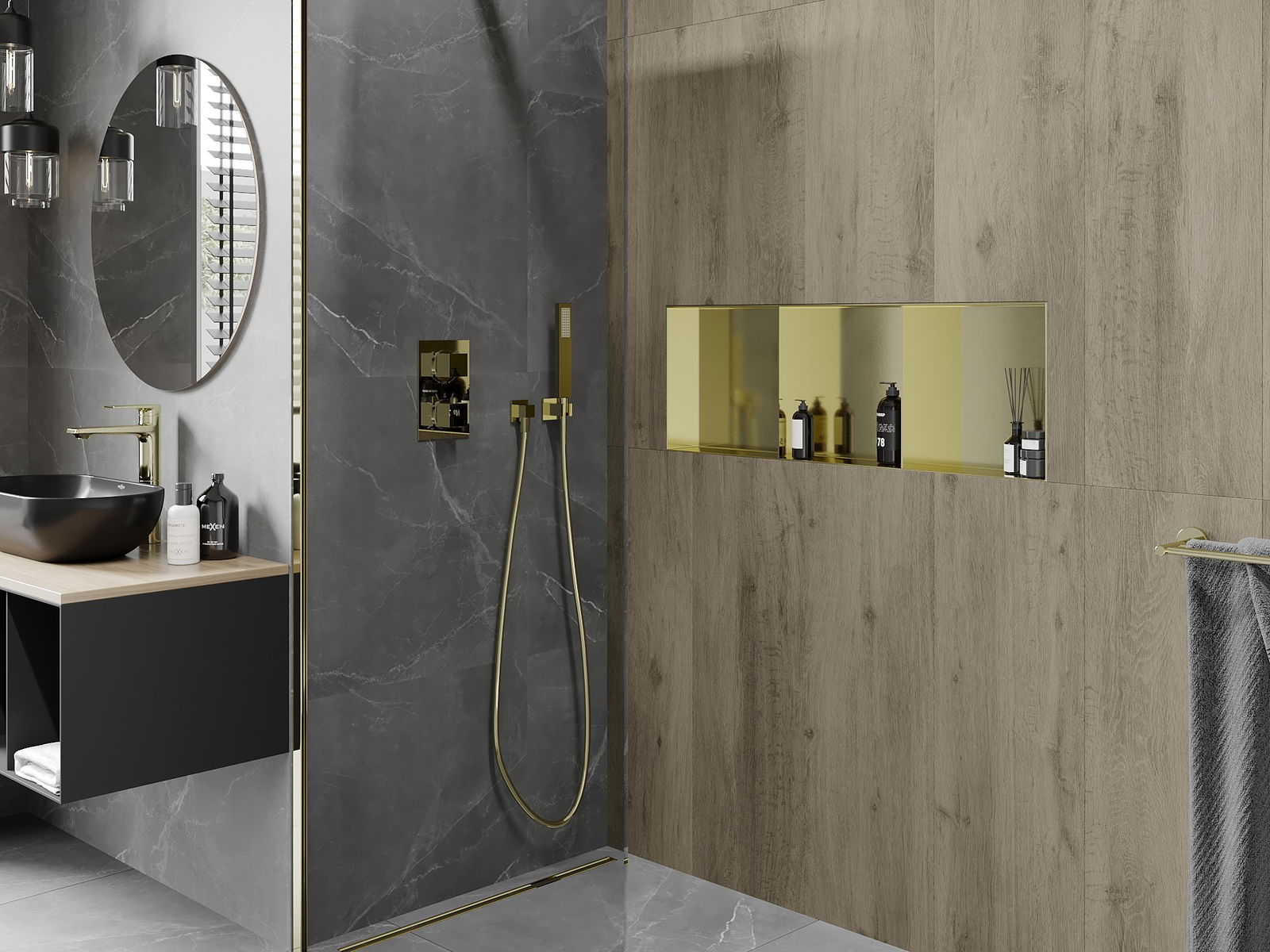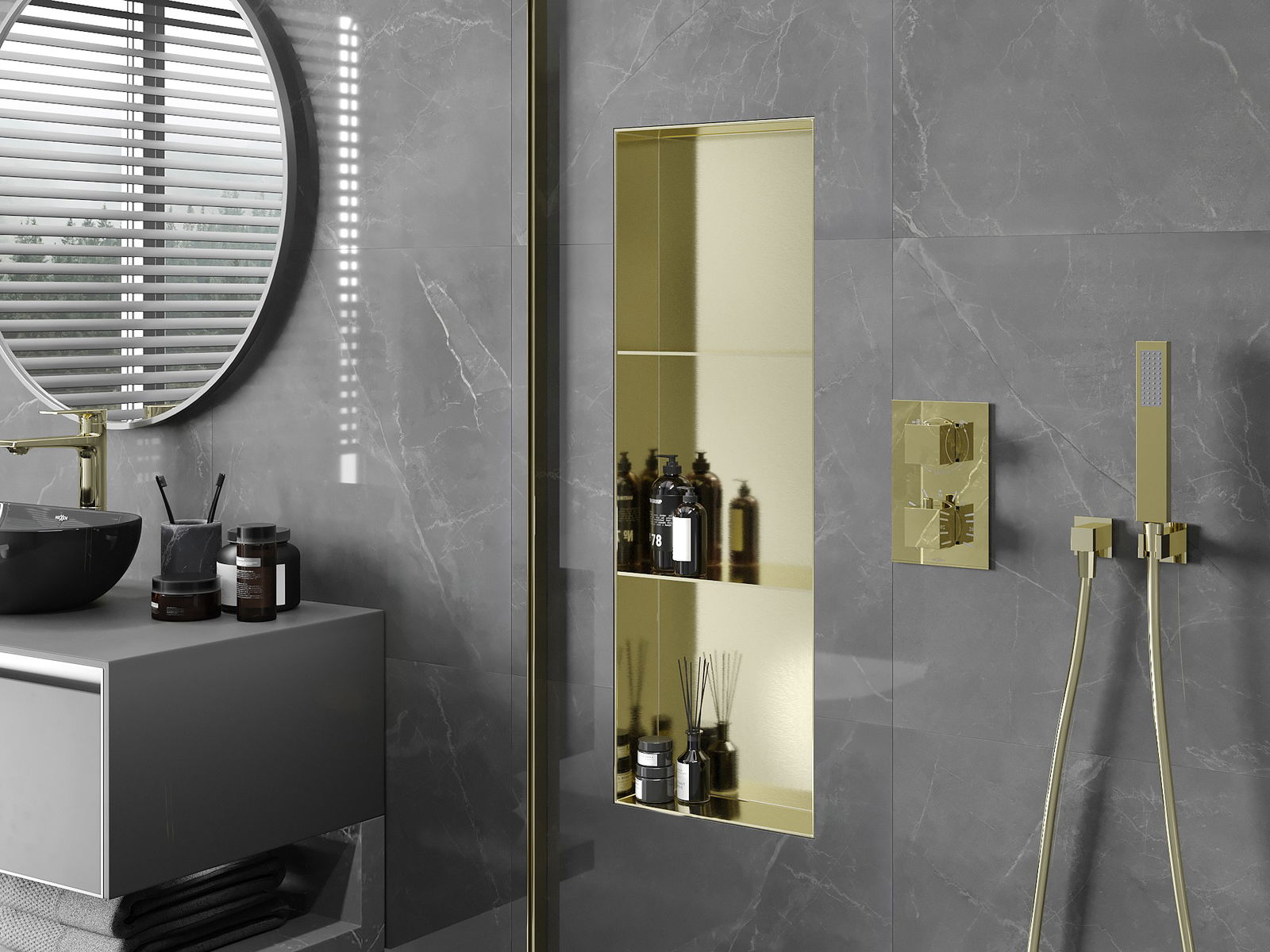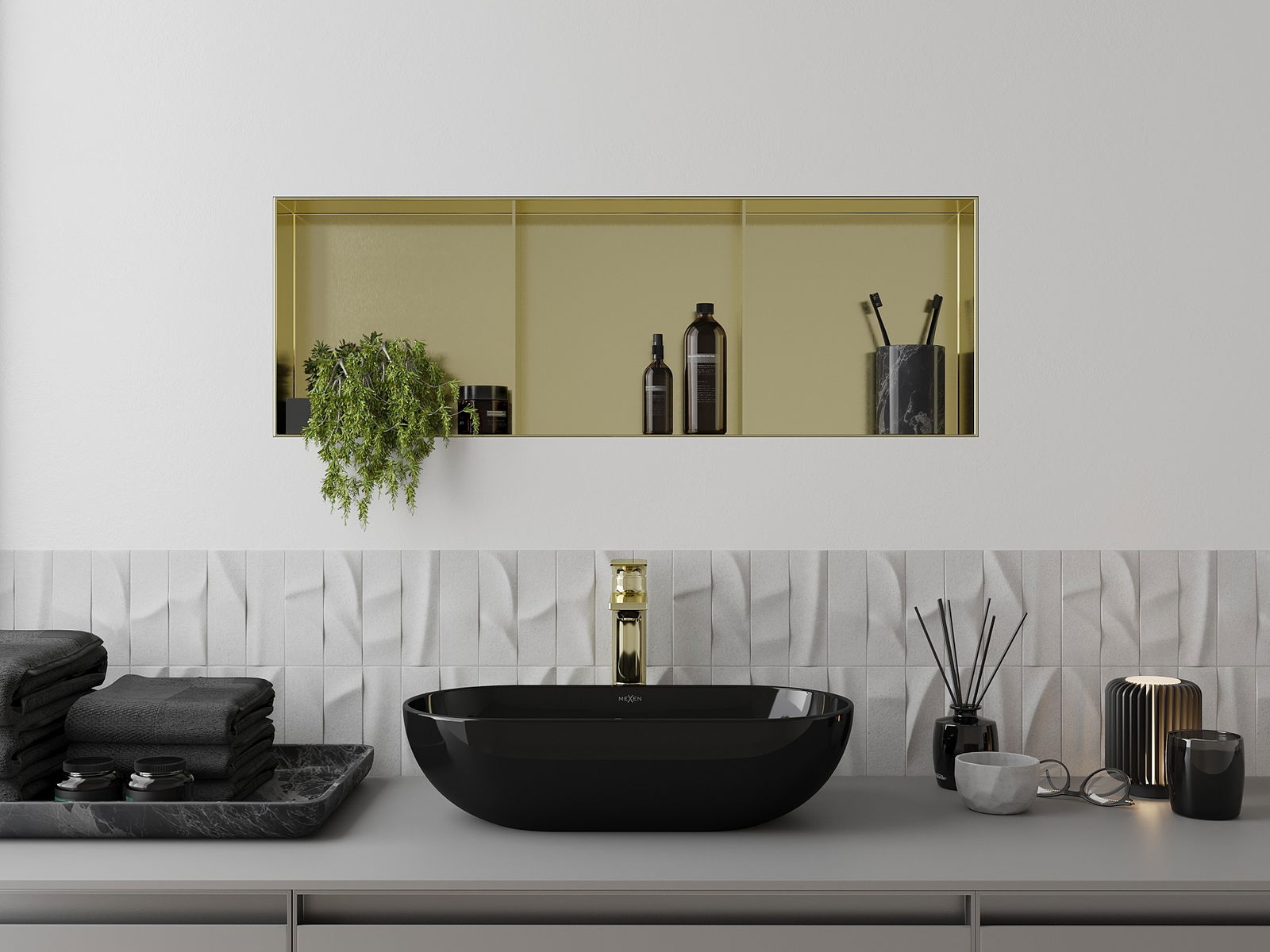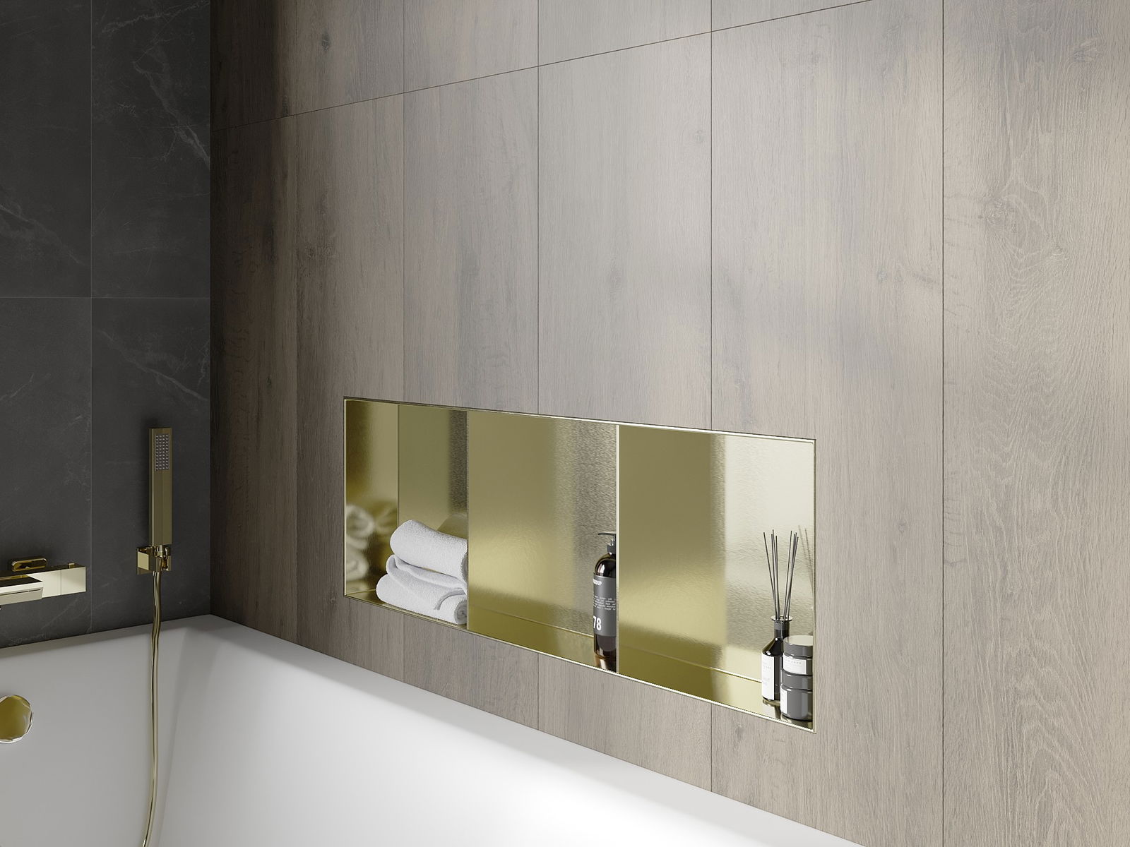Mexen X-Wall-NR étagère encastrée sans collerette avec étagère 90 x 30 cm, or brossé - 1951903010S