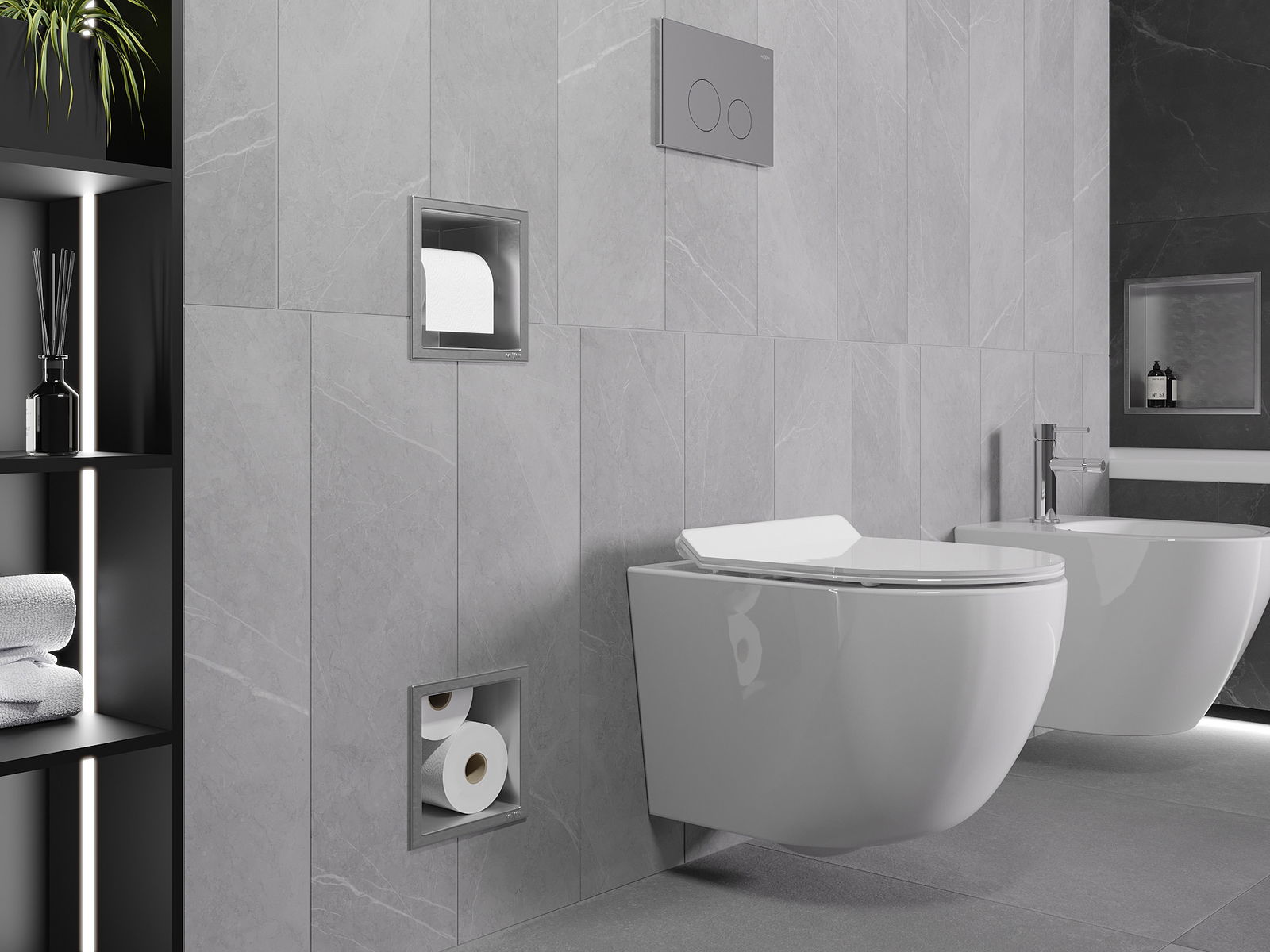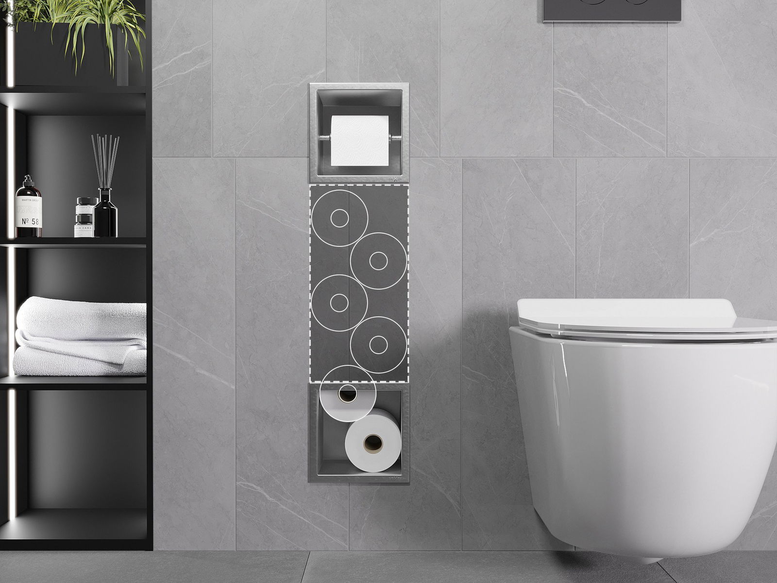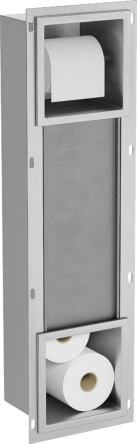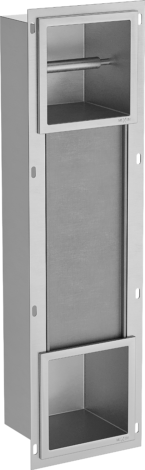 X-wall est un porte-papier toilette pratique avec magasin mural intégré. Un nouveau rouleau est toujours à portée de main et l'espace auparavant réservé au papier toilette peut être réutilisé.