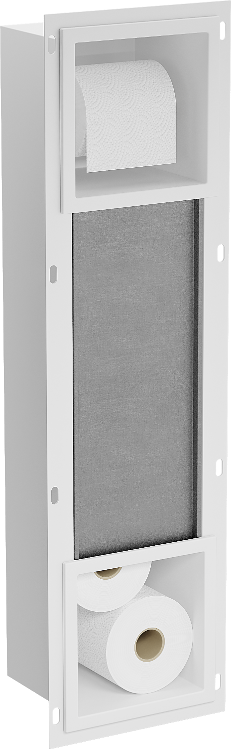 X-wall est un porte-papier toilette pratique avec magasin mural intégré. Un nouveau rouleau est toujours à portée de main et l'espace auparavant réservé au papier toilette peut être réutilisé.
