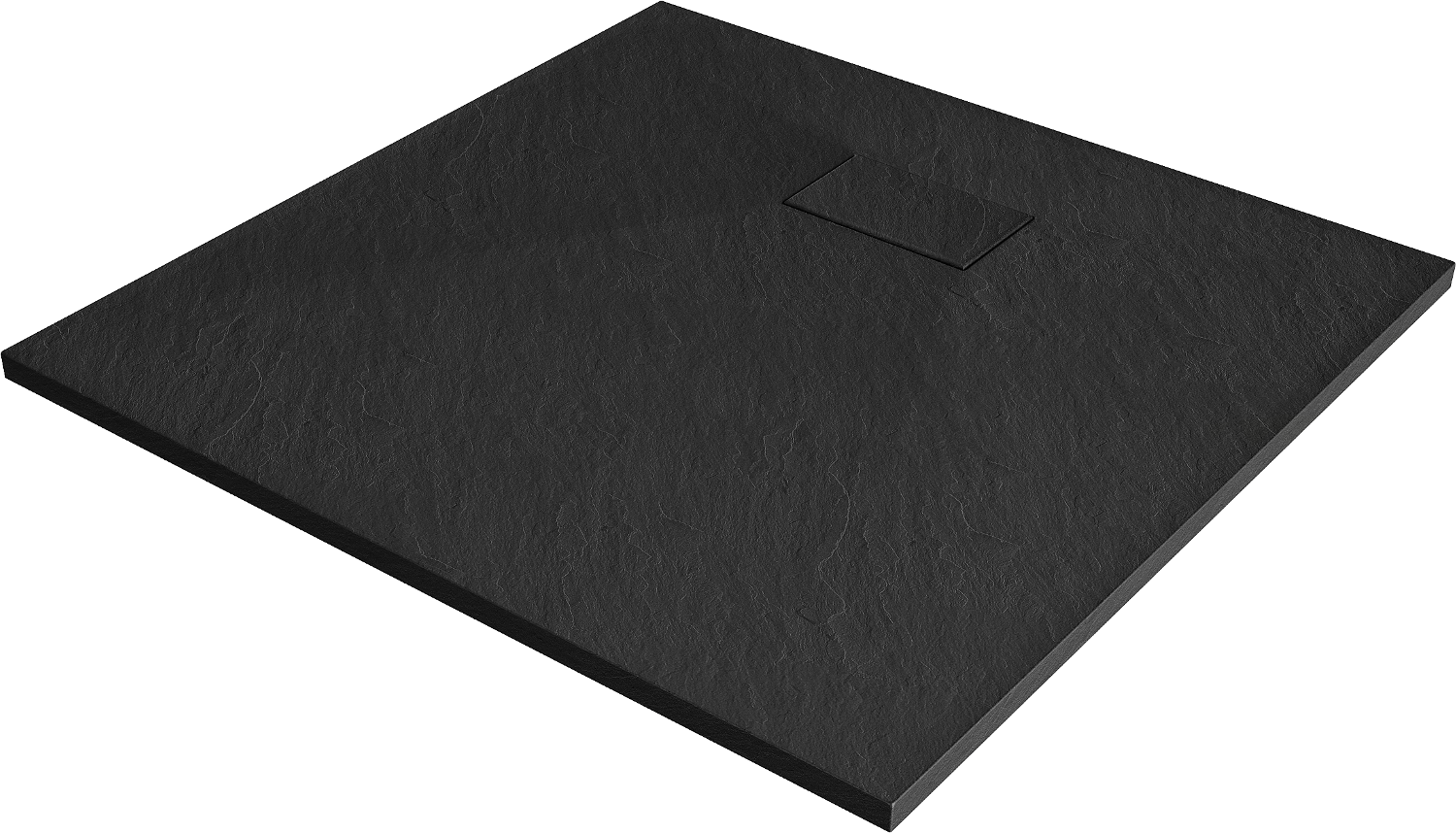 La surface du receveur de douche évoque la pierre. C'est une combinaison unique d'aspect naturel et de design intérieur moderne. Il ajoute du caractère, souligne l'esthétique et l'élégance de la salle de bains et séduit par sa forme.