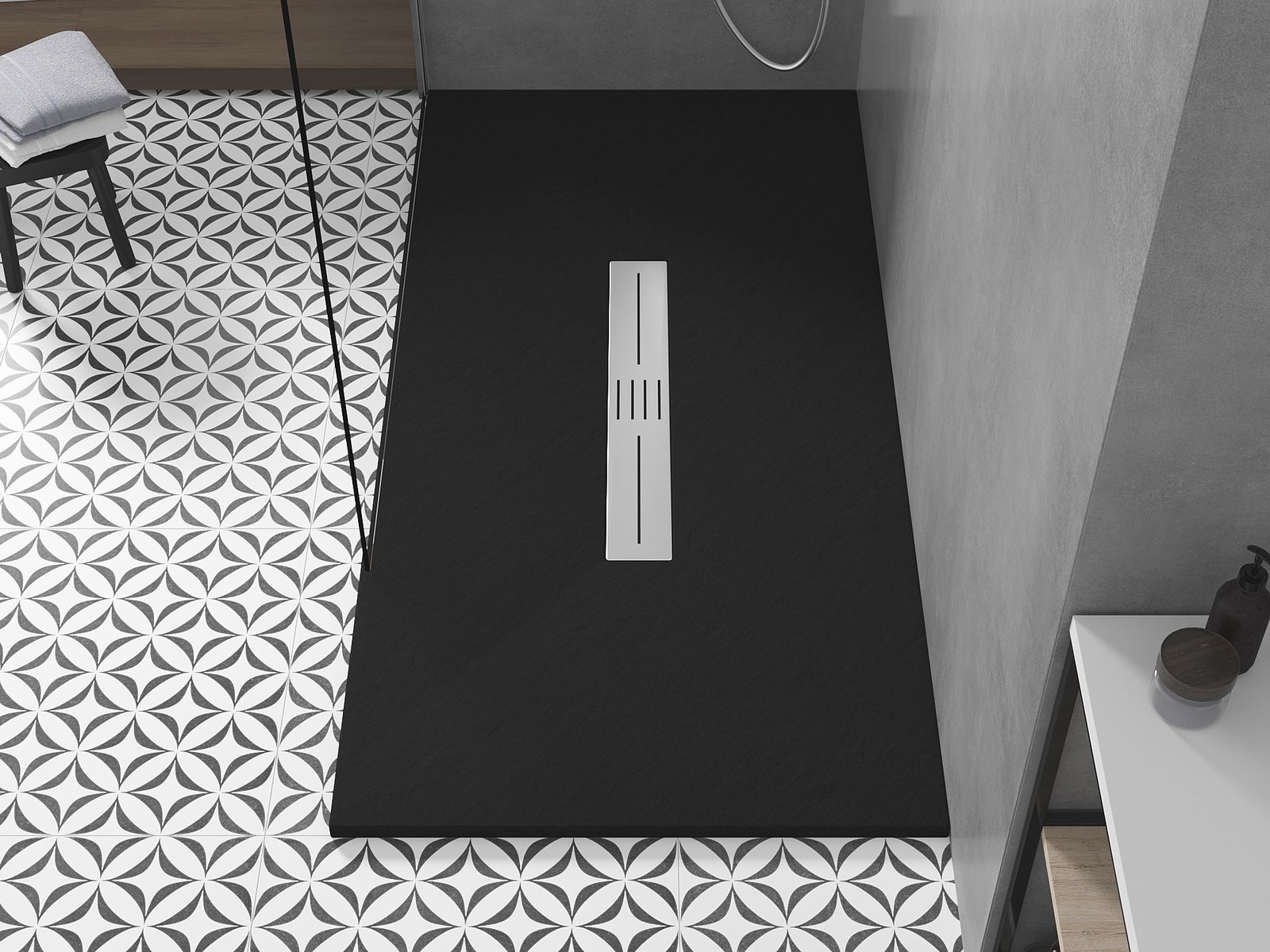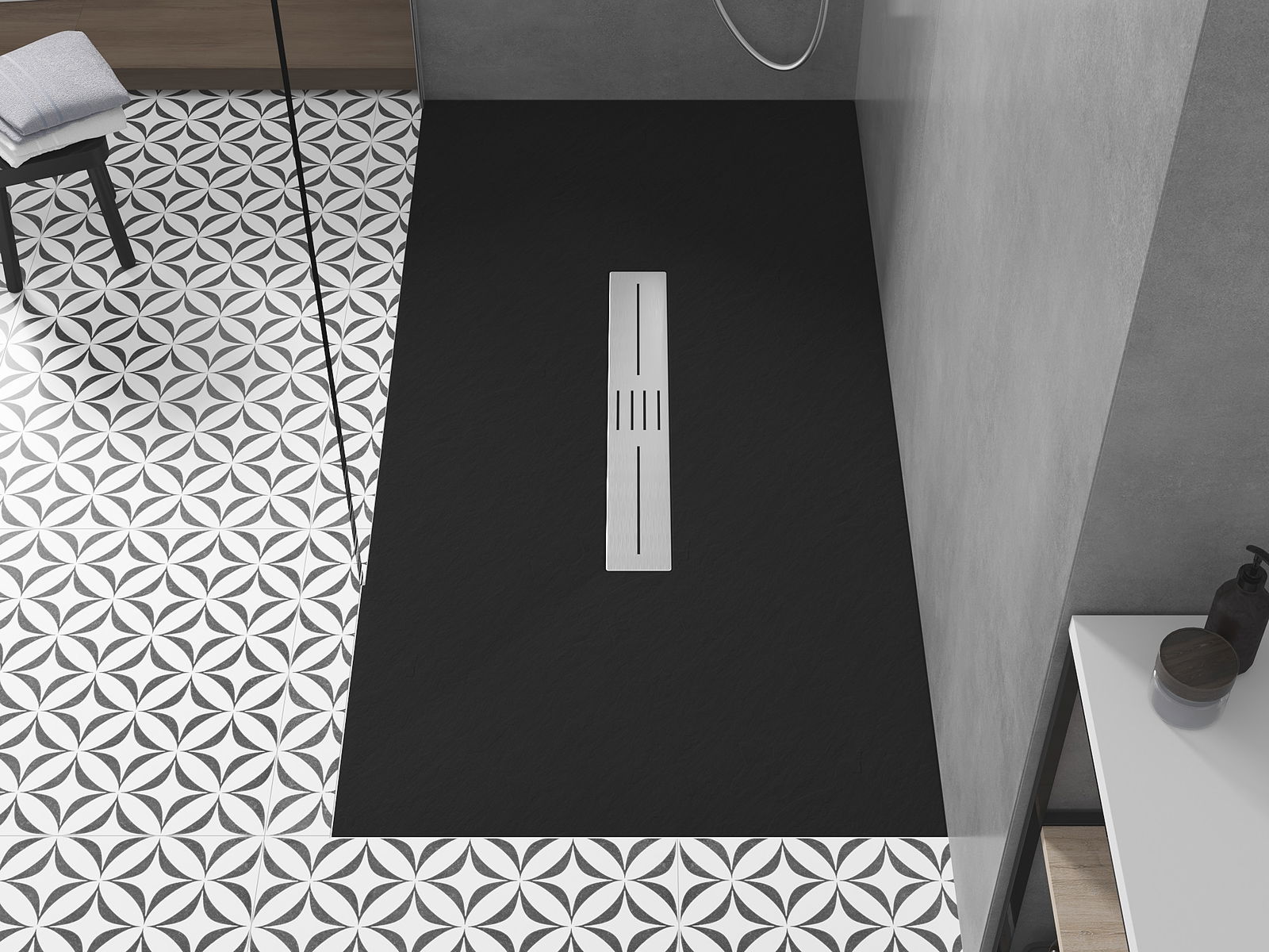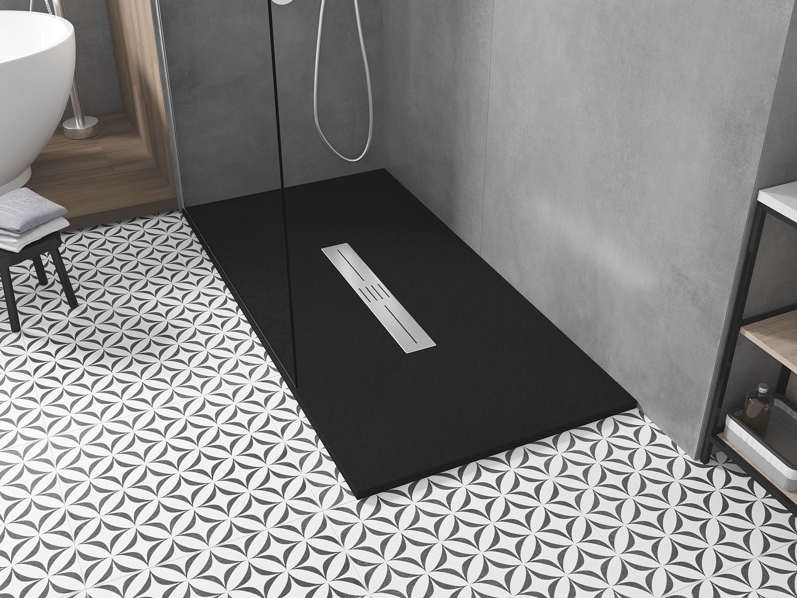 La surface du receveur de douche rappelle par sa structure la pierre. Elle constitue une combinaison exceptionnelle d'un aspect naturel et d'un aménagement intérieur moderne. Elle ajoute du caractère, souligne l'esthétique et l'élégance de la décoration de la salle de bains et séduit par sa forme.