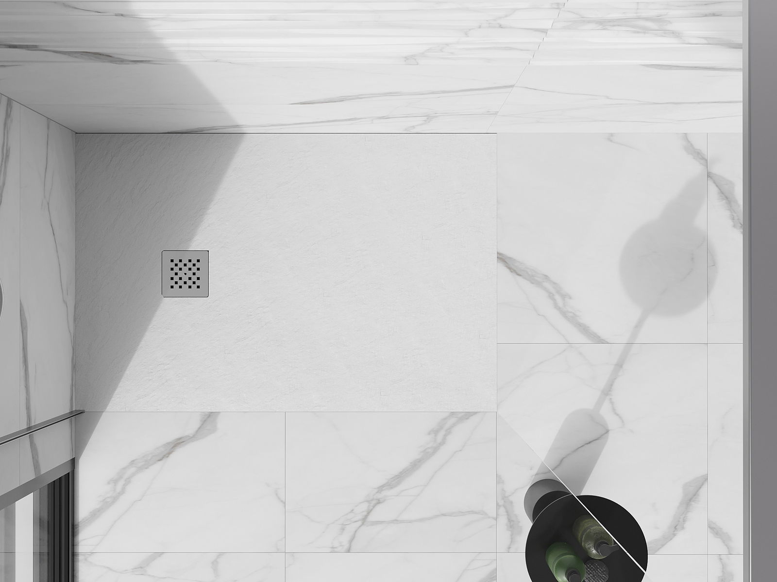 La surface du receveur de douche rappelle par sa structure la pierre. Elle constitue une combinaison exceptionnelle d'un aspect naturel et d'un aménagement intérieur moderne. Elle ajoute du caractère, souligne l'esthétique et l'élégance de la décoration de la salle de bains et séduit par sa forme.