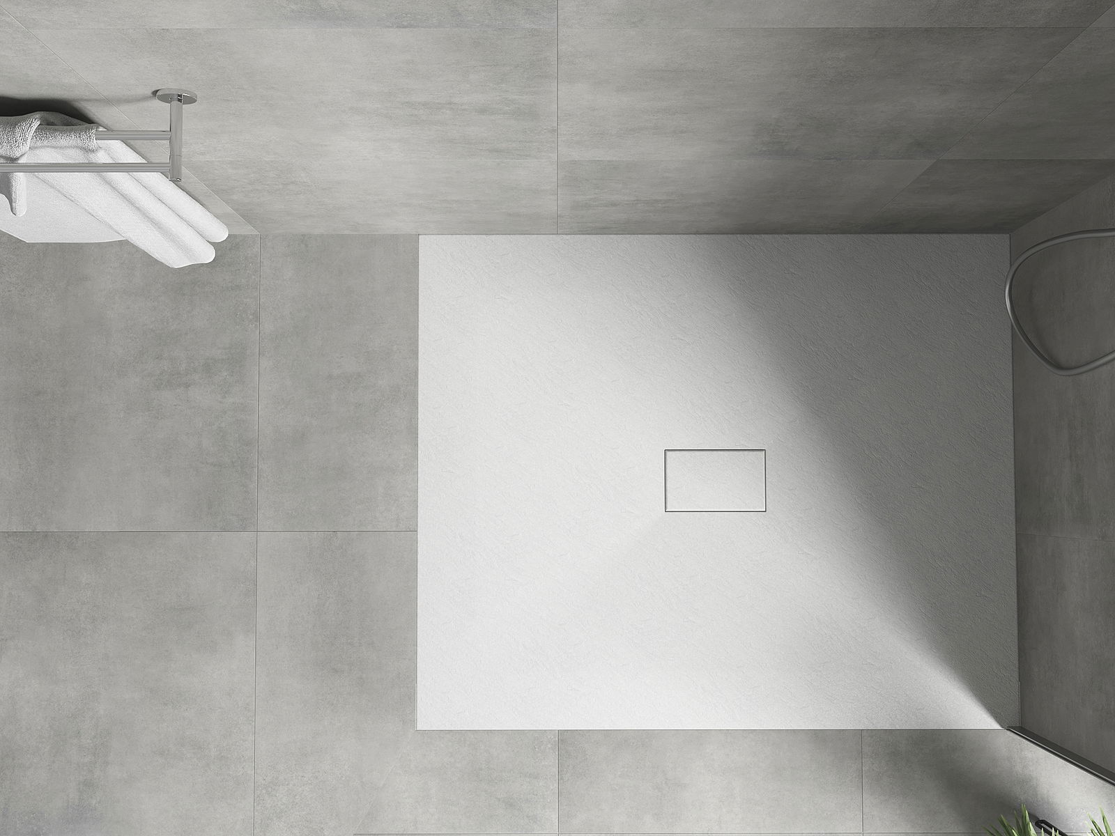La surface du receveur de douche évoque la pierre. C'est une combinaison unique d'aspect naturel et de design intérieur moderne. Il ajoute du caractère, souligne l'esthétique et l'élégance de la salle de bains et séduit par sa forme.