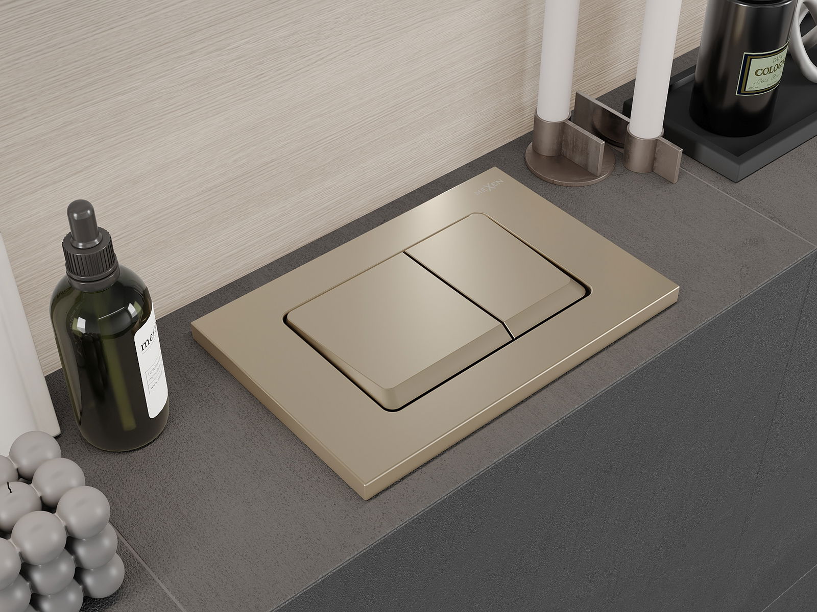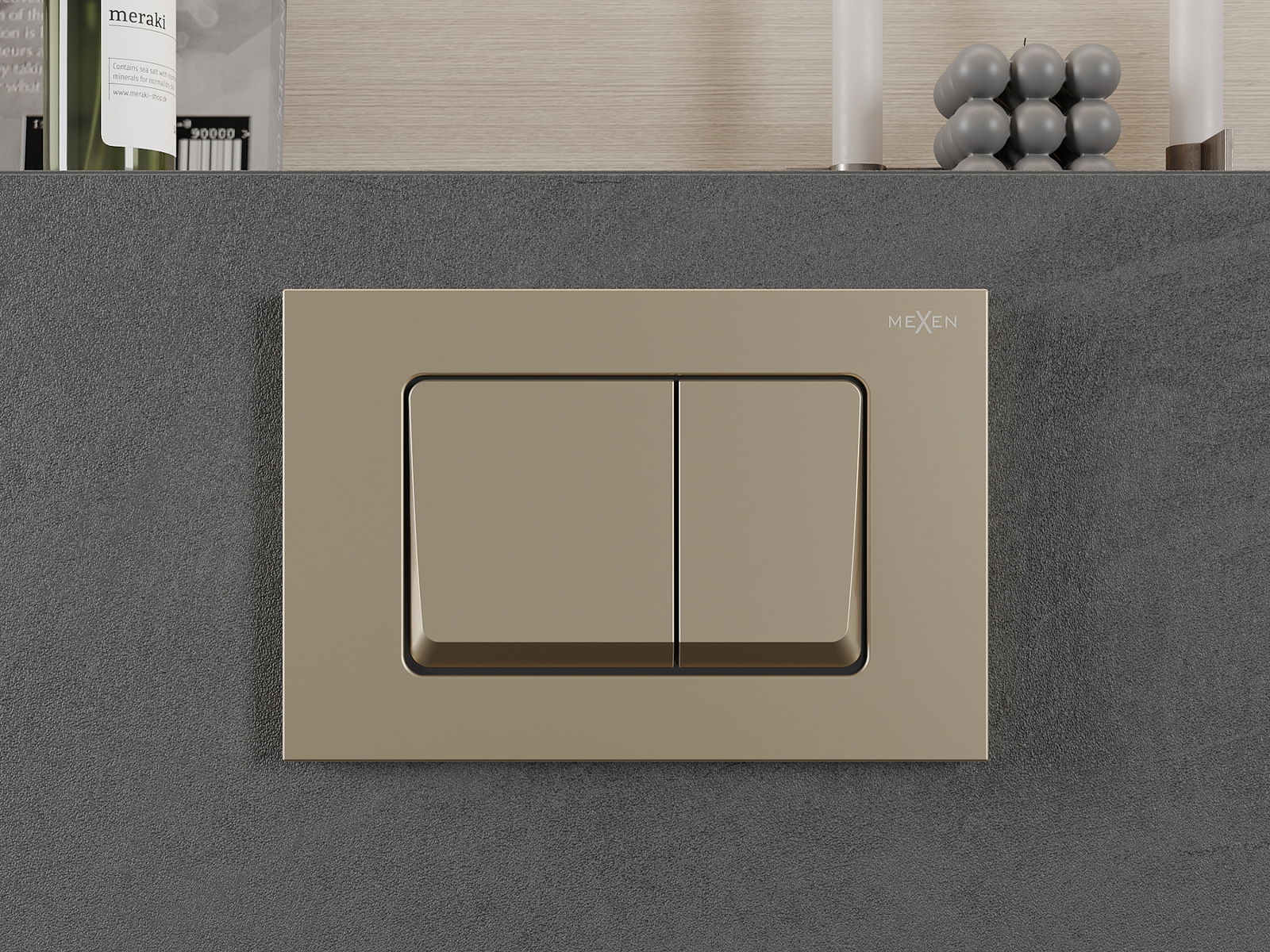 Le bouton est conçu pour les châssis Mexen de la série XS. Il peut être monté à la fois à l'avant et en haut du châssis, ce qui augmente son universalité. Cette solution facilite l'installation dans différentes conditions de montage. Ainsi, le contrôle de la chasse d'eau est pratique et intuitif.