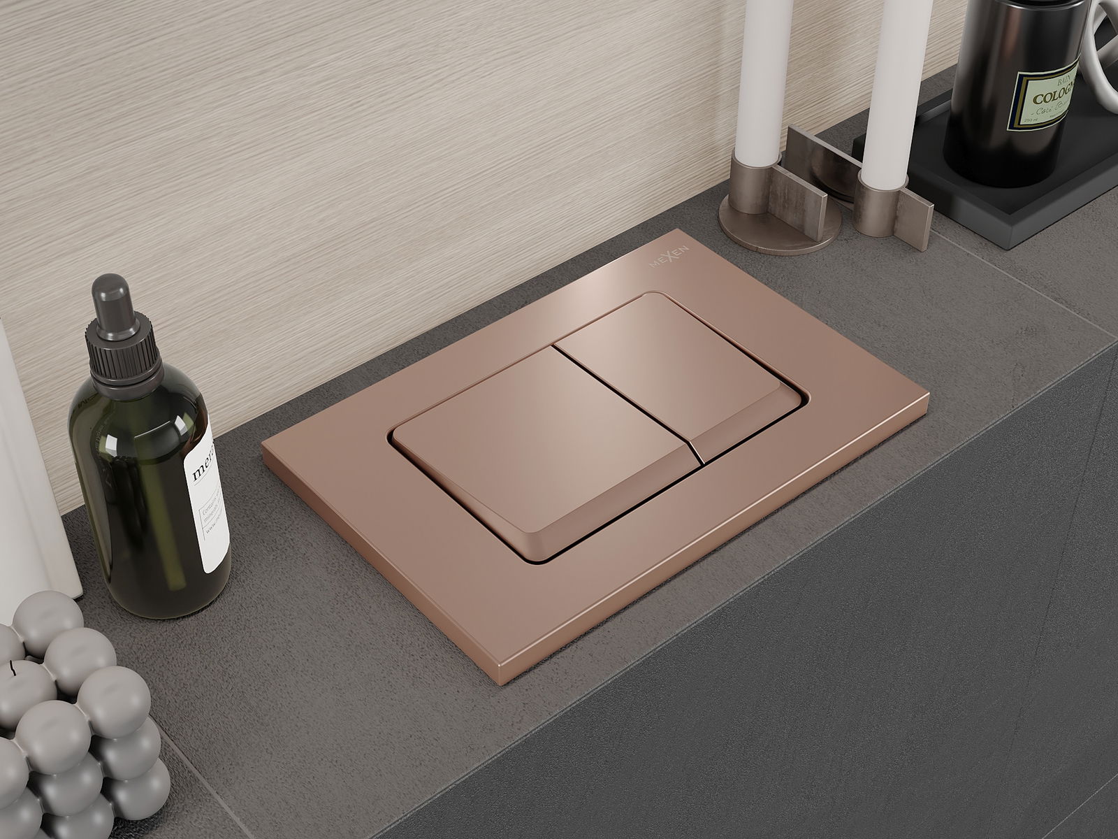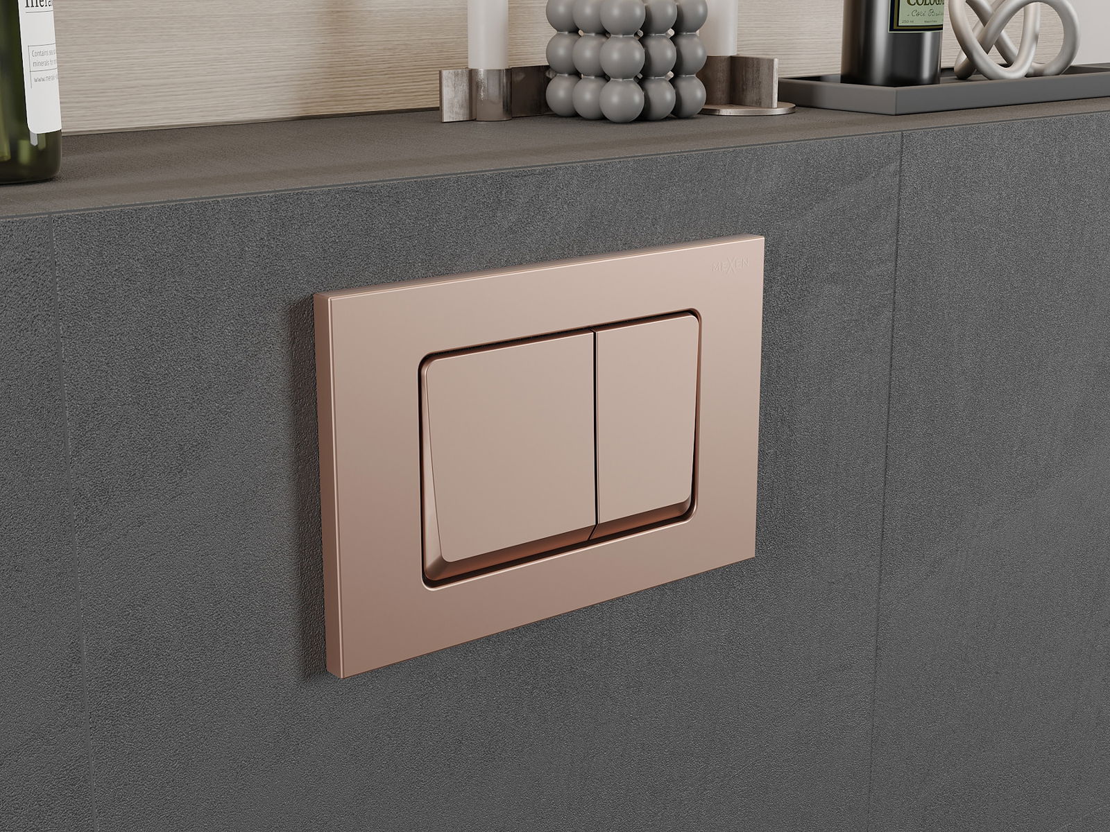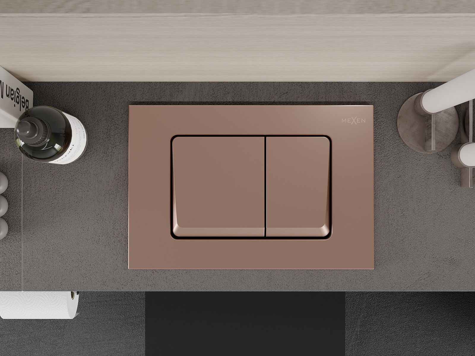 Ce bouton est conçu pour les cadres Mexen de la série XS. Il peut être monté aussi bien par l'avant que par le haut du cadre, ce qui accroît sa polyvalence. Cette solution facilite l'installation dans diverses conditions de montage. Grâce à cela, le rinçage est pratique et intuitif.