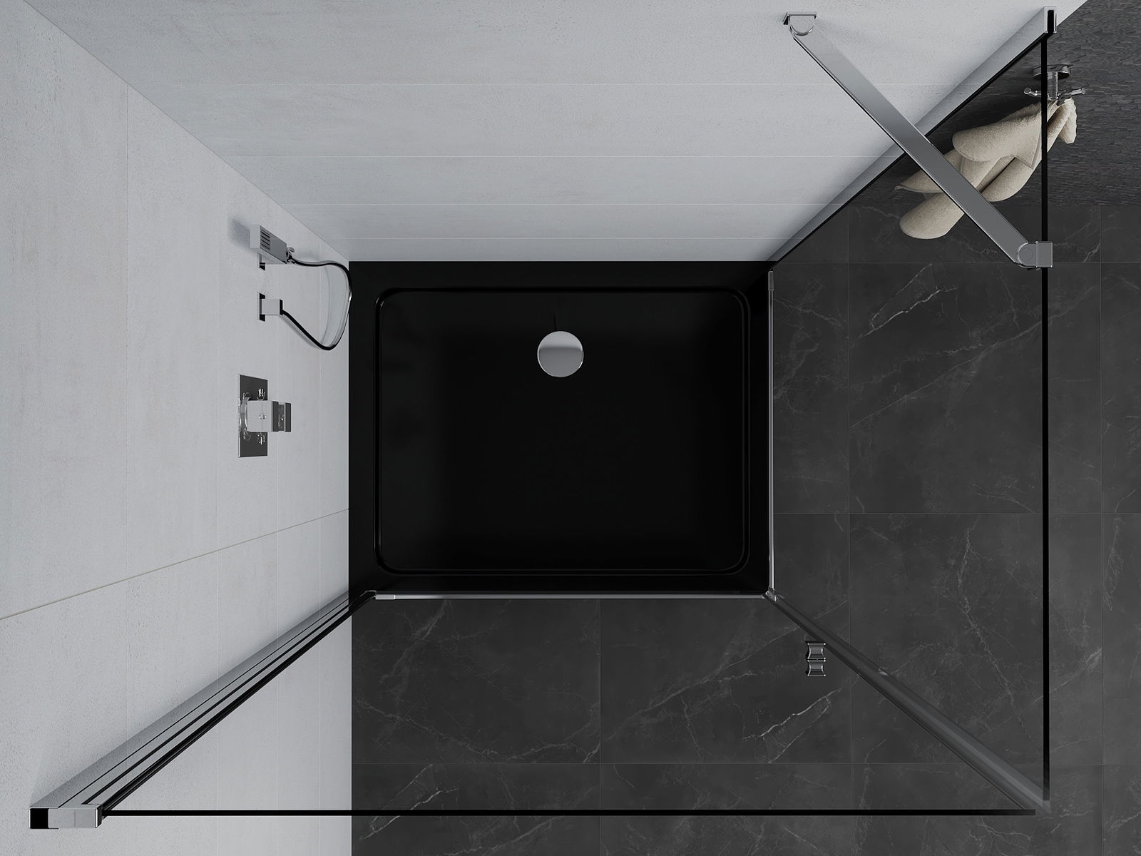 Mexen Pretoria cabine de douche pivotante 70 x 80 cm, transparent, chrome + receveur plat, noir - 852-070-080-01-00-4070