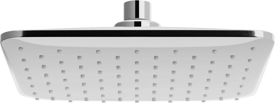 La douche de tête possède des buses en caoutchouc qui empêchent l'accumulation de calcaire
