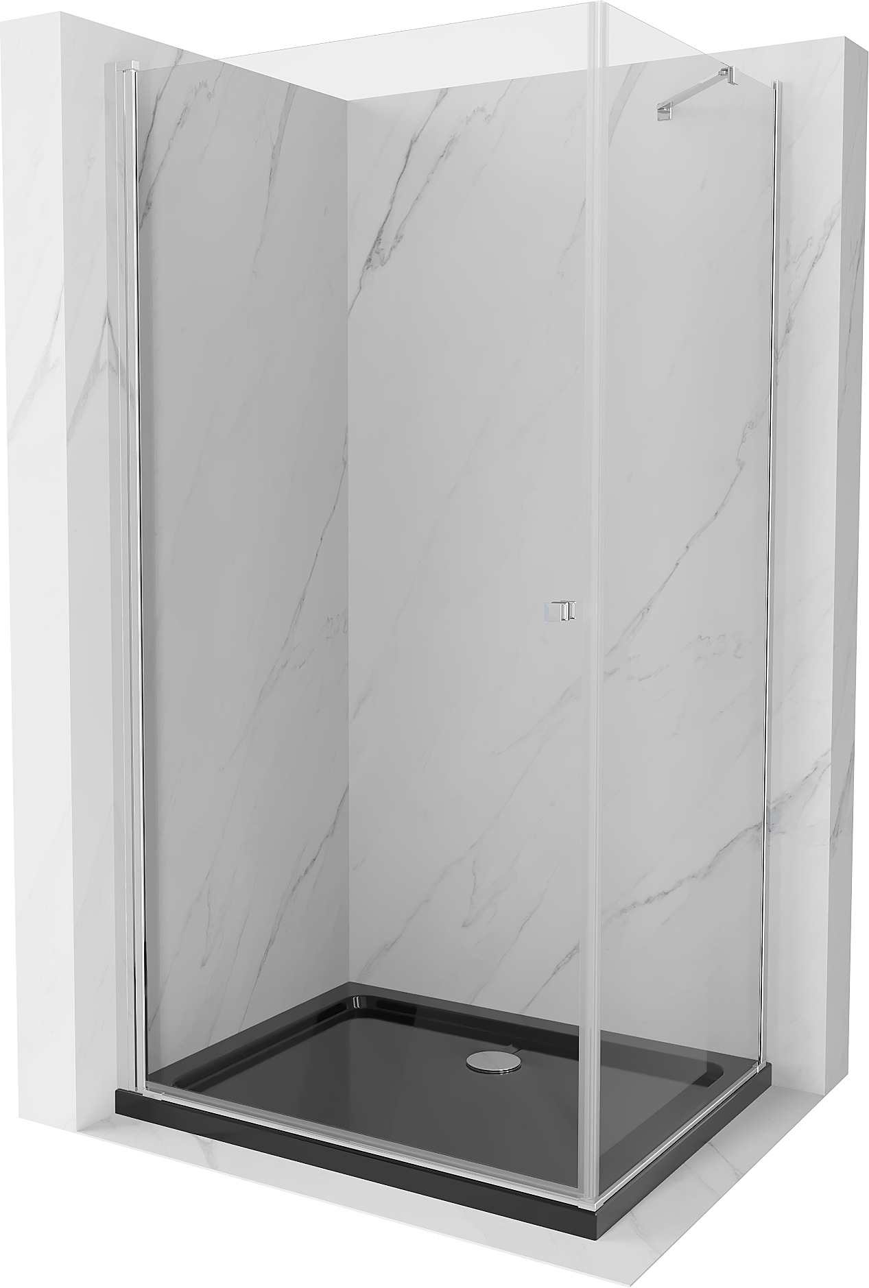 Mexen Pretoria cabine de douche pivotante 100 x 80 cm, transparent, chromé + bac à douche plat, noir - 852-100-080-01-00-4070