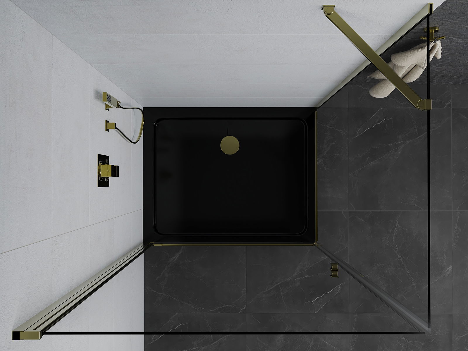 La poignée pratique et confortable est fabriquée en métal durable et résistant. Sa forme à la mode, combinée à une finition assortie à la couleur des profilés, donne à l'ensemble un aspect moderne et stylé, soulignant l'esthétique de chaque salle de bain.