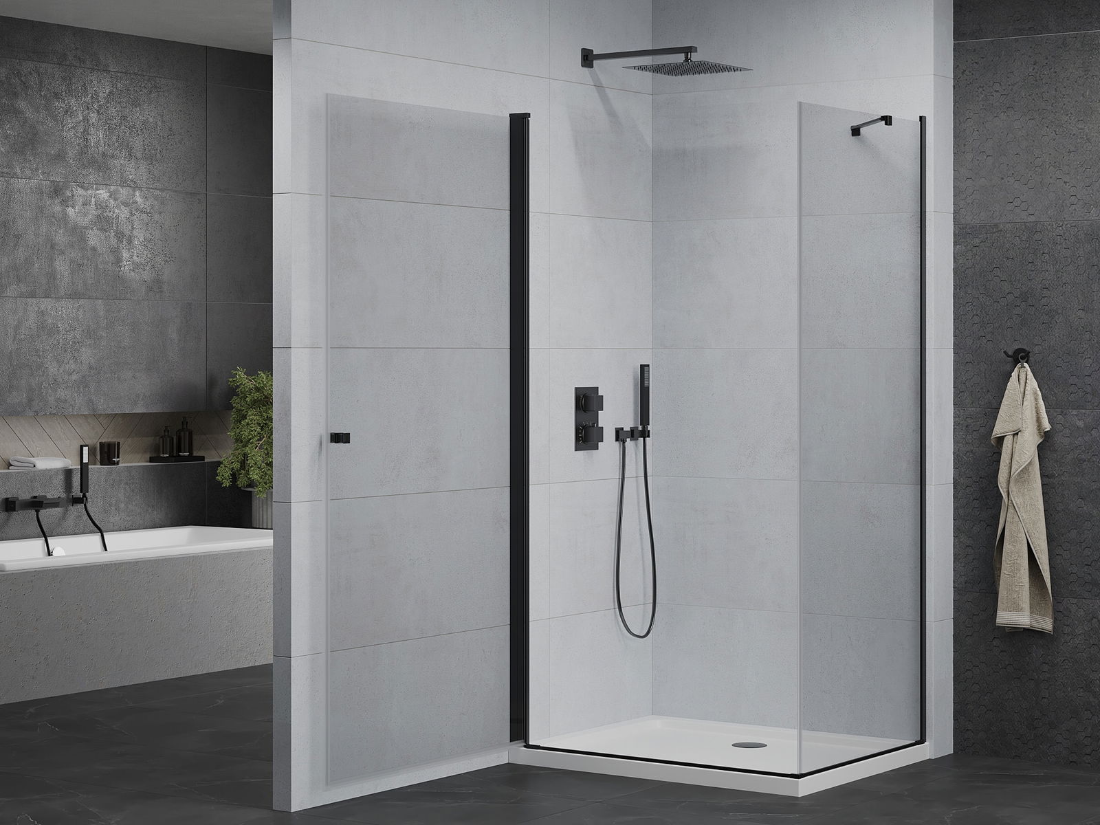 Mexen Pretoria cabine de douche pivotante 90 x 70 cm, transparente, noire + bac à douche plat - 852-090-070-70-00-4010B