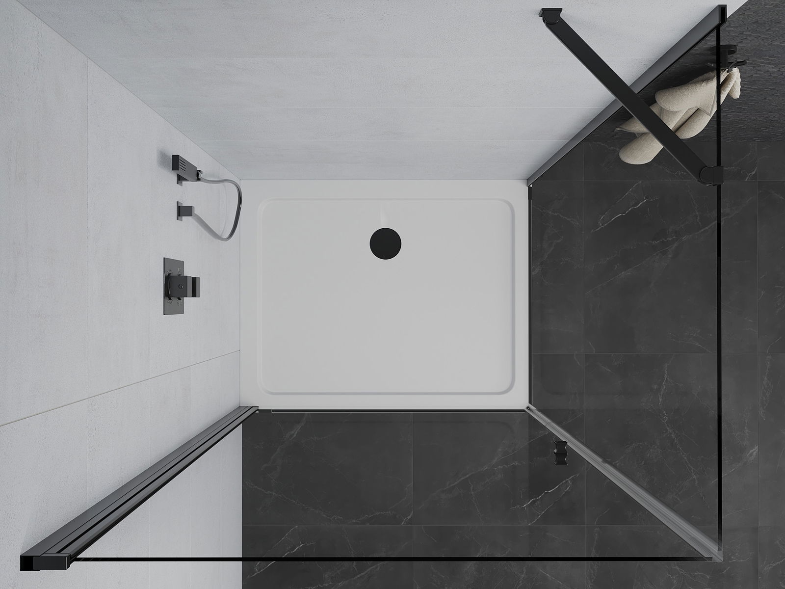 Mexen Pretoria cabine de douche pivotante 90 x 120 cm, transparente, noire + receveur Flat - 852-090-120-70-00-4010B