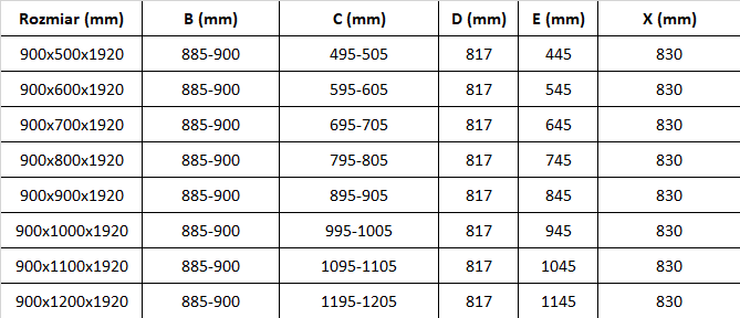 Taille: 90x120 cm (porte 90 cm, paroi 120 cm)