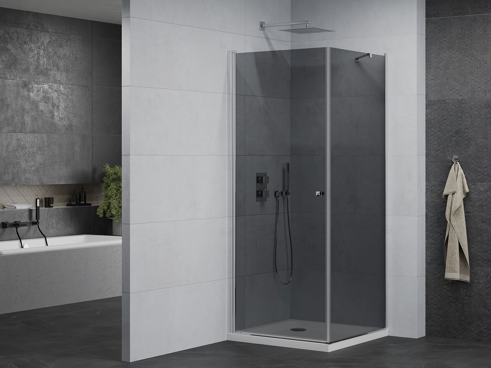 Mexen Pretoria cabine de douche pivotante 70 x 70 cm, graphite, chrome + receveur plat - 852-070-070-01-40-4010