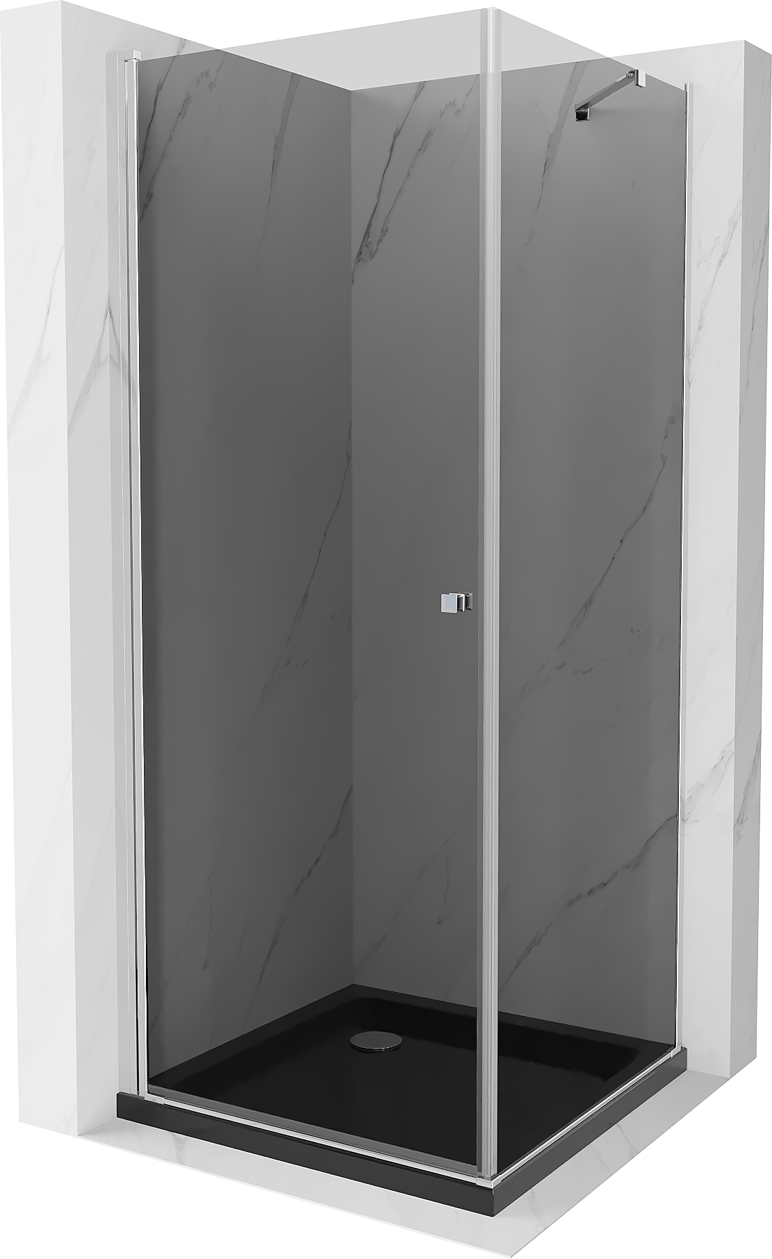 Mexen Pretoria cabine de douche pivotante 80 x 80 cm, graphite, chrome + receveur Flat, noir - 852-080-080-01-40-4070