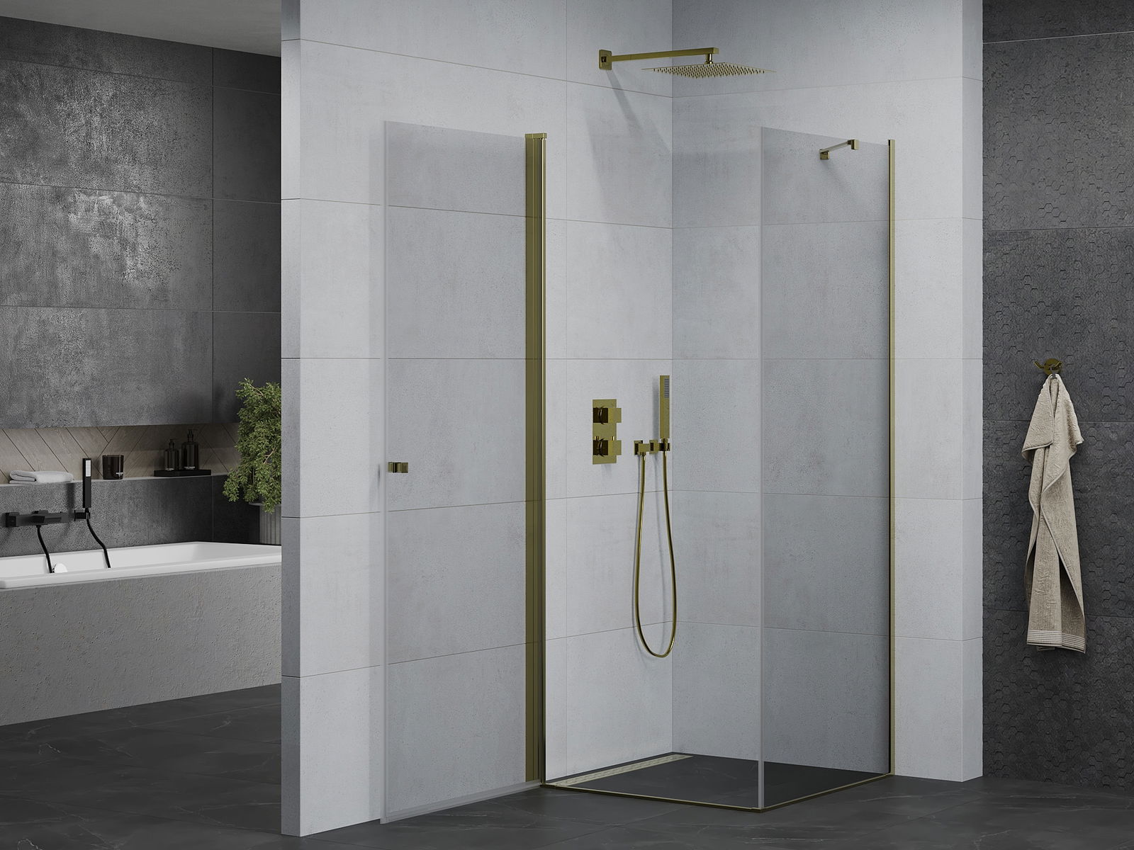 Mexen Pretoria cabine de douche battante 100 x 100 cm, transparent, dorée - 852-100-100-50-00