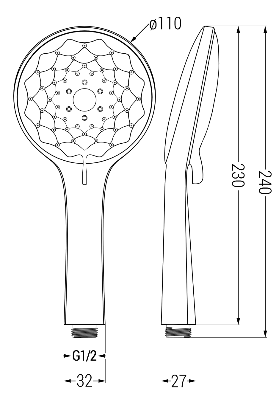 Jet d'eau standard imitant la pluie naturelle. Les gouttes s'écoulent uniformément sur le corps, l'enveloppant d'une agréable sensation d'hydratation et vous permettant de vous immerger dans une expérience relaxante et apaisante pendant votre bain quotidien.