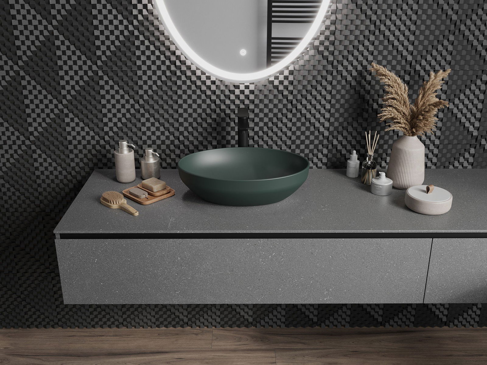 La surface mate de la céramique met parfaitement en valeur le caractère de la couleur du produit, lui conférant un fini unique et expressif. La structure subtile de la céramique mate apporte une touche d'élégance à la salle de bains, créant ainsi un espace esthétique.