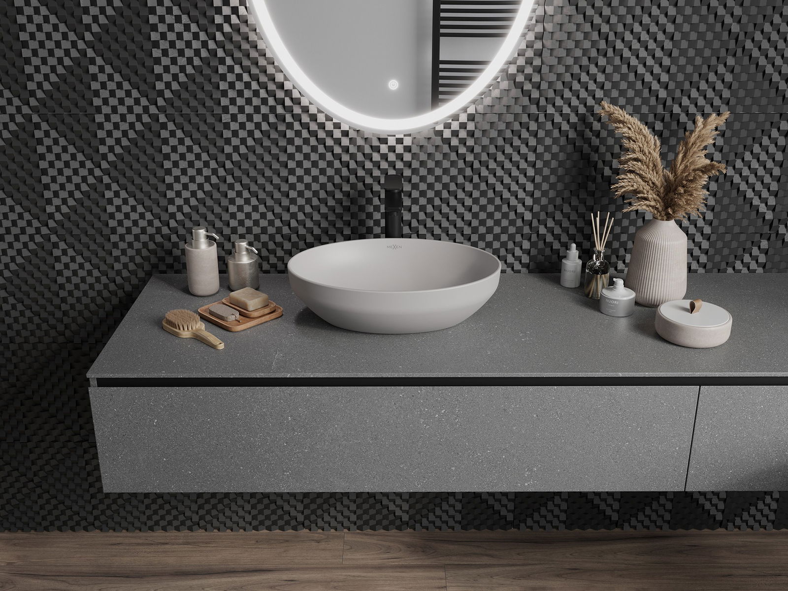 La surface mate de la céramique met parfaitement en valeur le caractère de la couleur du produit, lui conférant un fini unique et expressif. La structure subtile de la céramique mate apporte une touche d'élégance à la salle de bains, créant ainsi un espace esthétique.