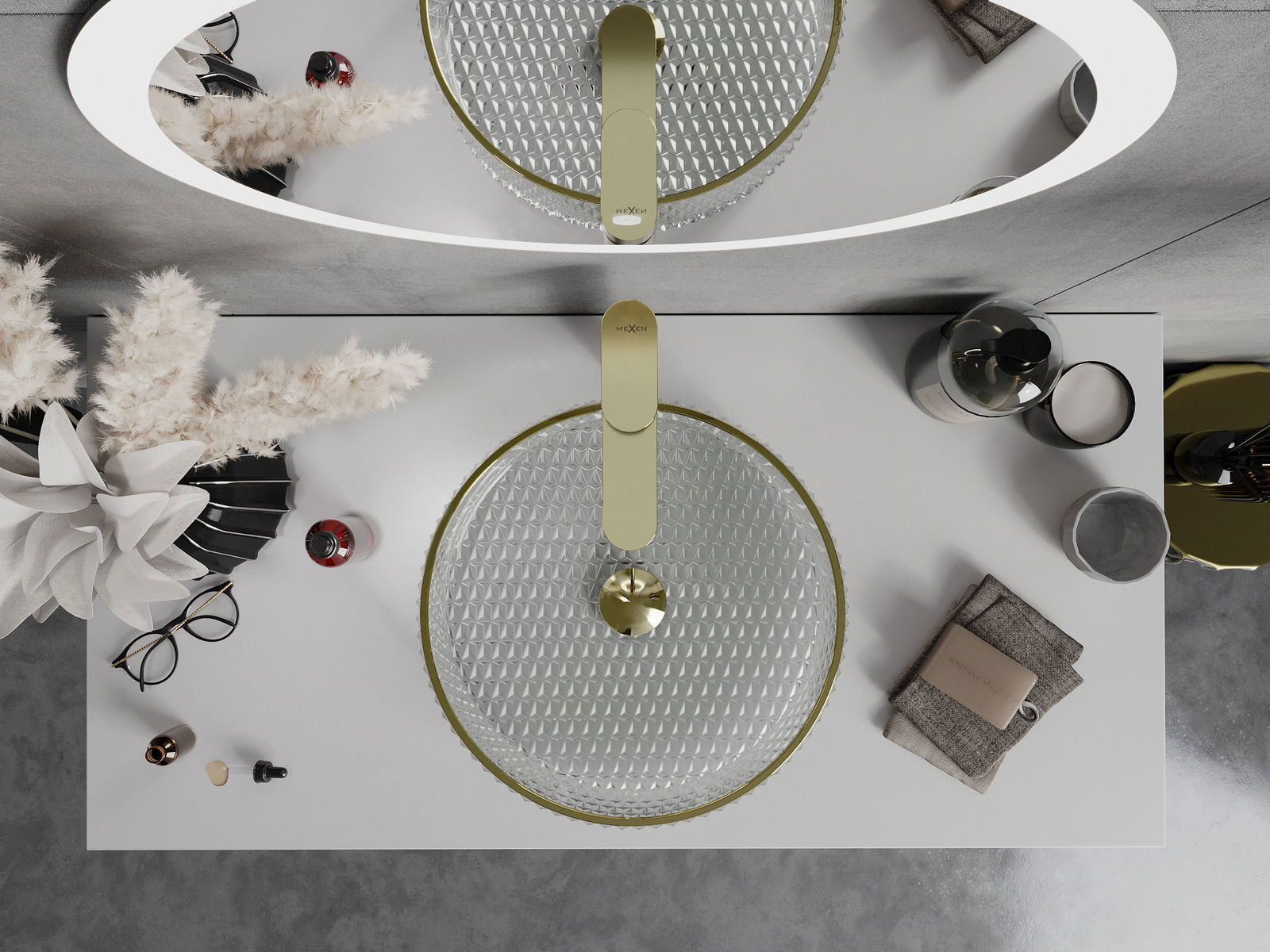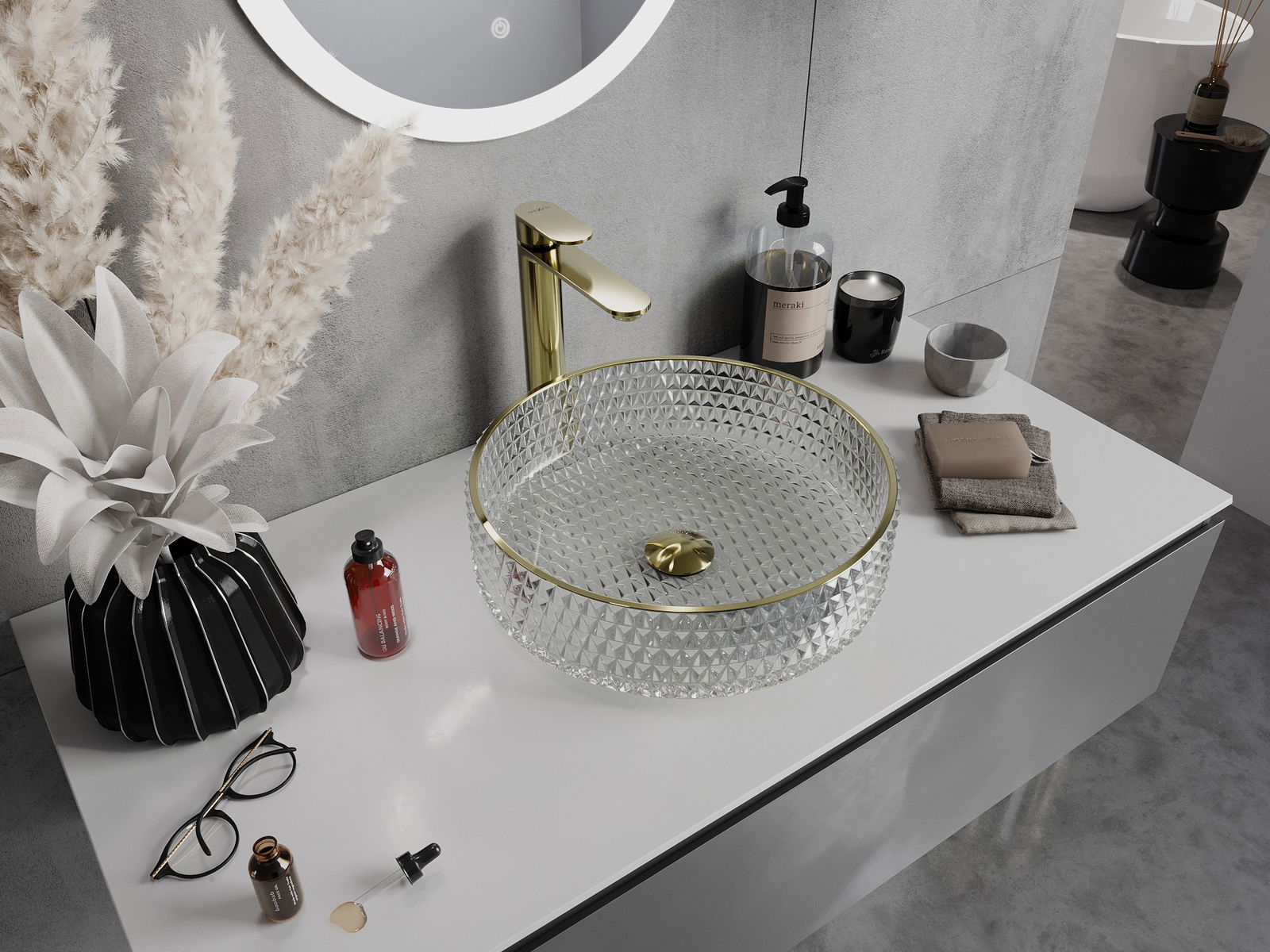 Mexen Aura lavabo en verre sur plan 39 x 39 cm, transparent/or - 24013905