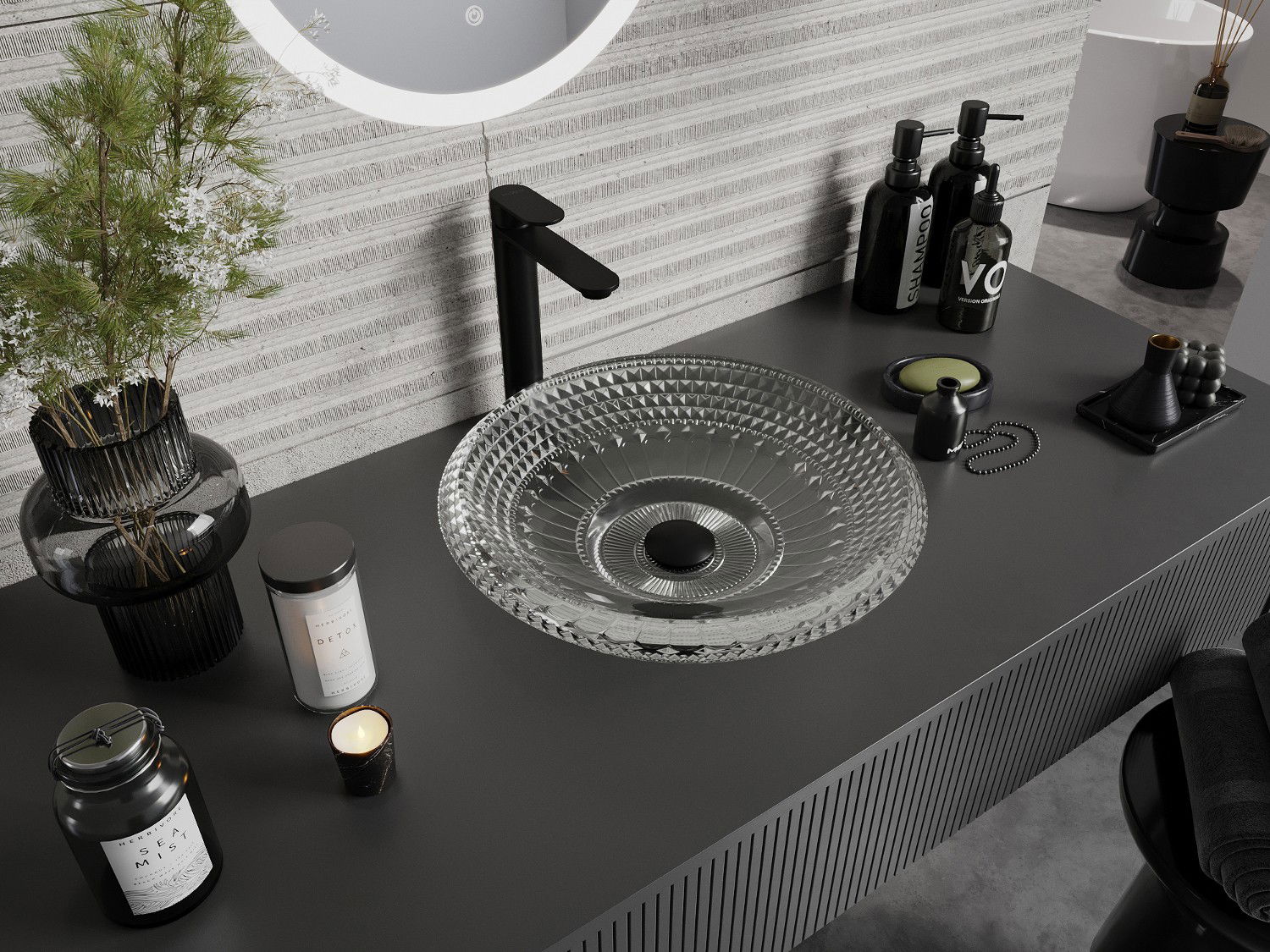 Ce lavabo se distingue par sa structure cristalline unique, qui lui confère un aspect unique et extrêmement efficace. Les cristaux scintillent à la lumière, attirant le regard et apportant une touche d'élégance. Une solution pratique et élégante pour toute salle de bains.