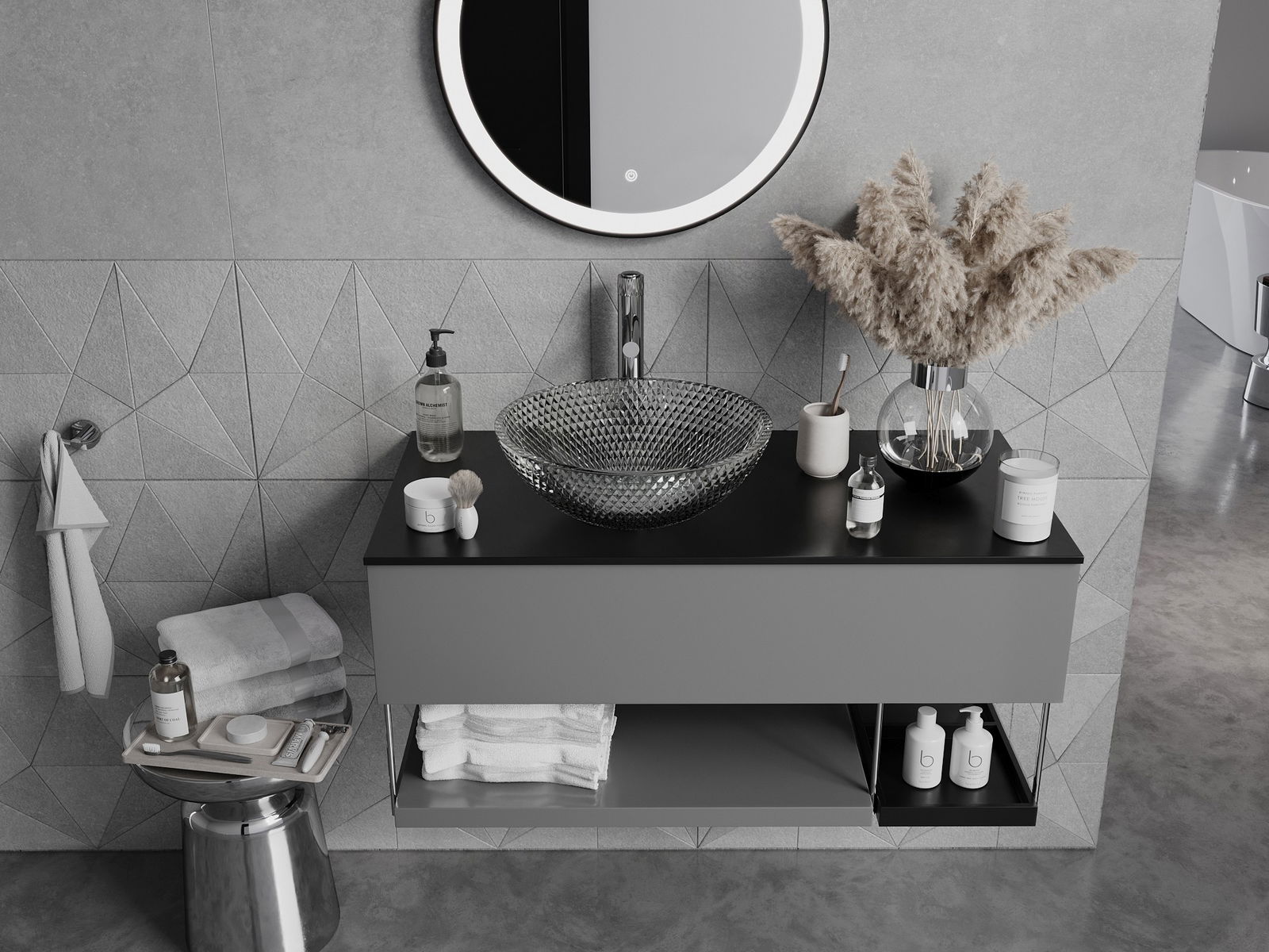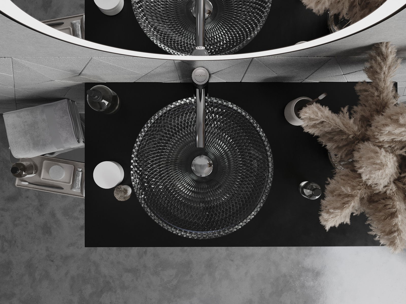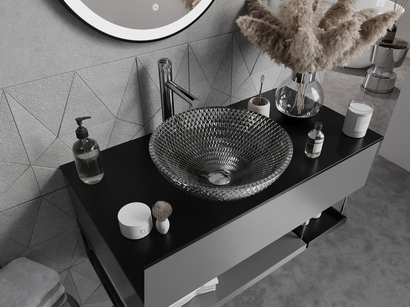 Ce lavabo se distingue par sa structure cristalline unique, qui lui confère un aspect unique et extrêmement efficace. Les cristaux scintillent à la lumière, attirant le regard et apportant une touche d'élégance. Une solution pratique et élégante pour toute salle de bains.