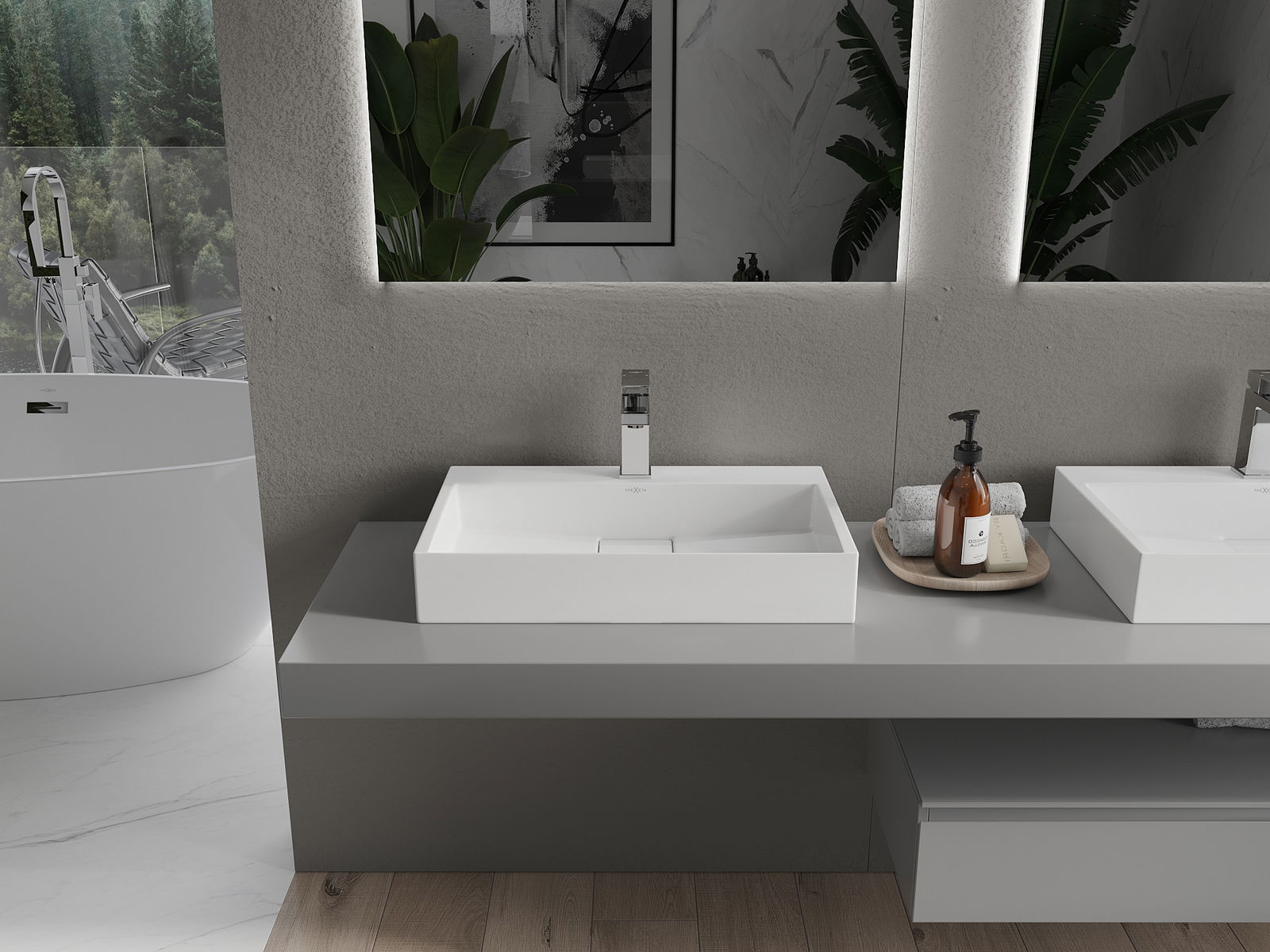 Mexen Ava lavabo de comptoir en conglomérat 1/O 60 x 38 cm, blanc - 23016001