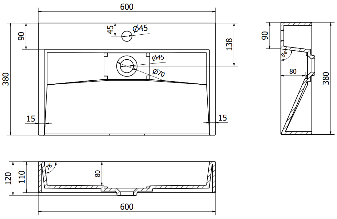 Le lavabo est doté d'un trou pour installer un robinet. Cela permet de gagner de la place dans la salle de bains et de mettre en valeur son esthétique. Cette solution facilite également la propreté des abords du lavabo.
