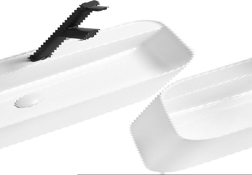Le lavabo est doté d'un trou pour installer un robinet. Cela permet de gagner de la place dans la salle de bains et de mettre en valeur son esthétique. Cette solution facilite également la propreté des abords du lavabo.