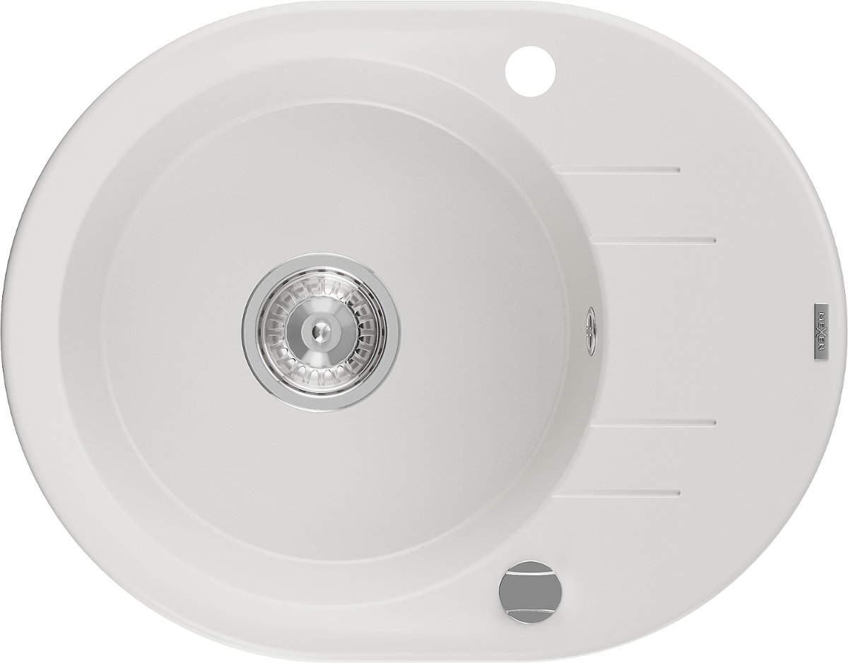 Mexen Kevin évier en granit 1 bac avec égouttoir 586 x 458 mm, blanc, siphon chromé - 6517581005-20