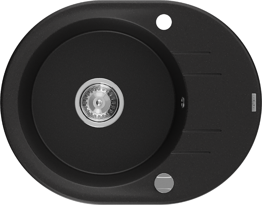 Mexen Kevin évier en granit à 1 bac avec égouttoir 586 x 458 mm, noir, siphon chromé - 6517581005-77