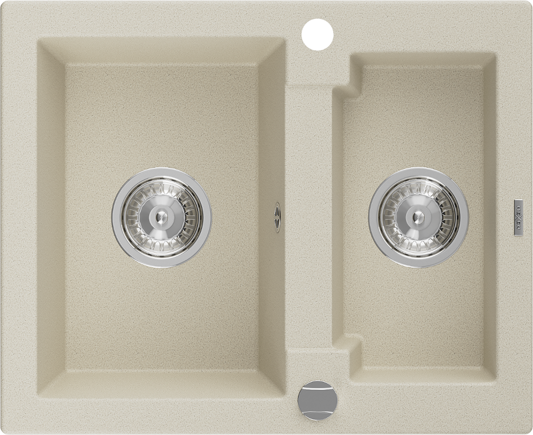 Mexen Carlos évier en granit 1,5 bac 582 x 475 mm, beige, siphon chromé - 6518581500-69
