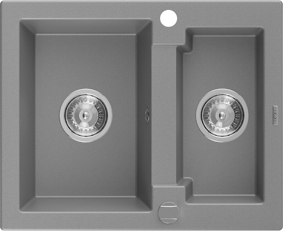 Mexen Carlos évier en granit 1,5 bac 582 x 475 mm, gris, siphon chromé - 6518581500-71